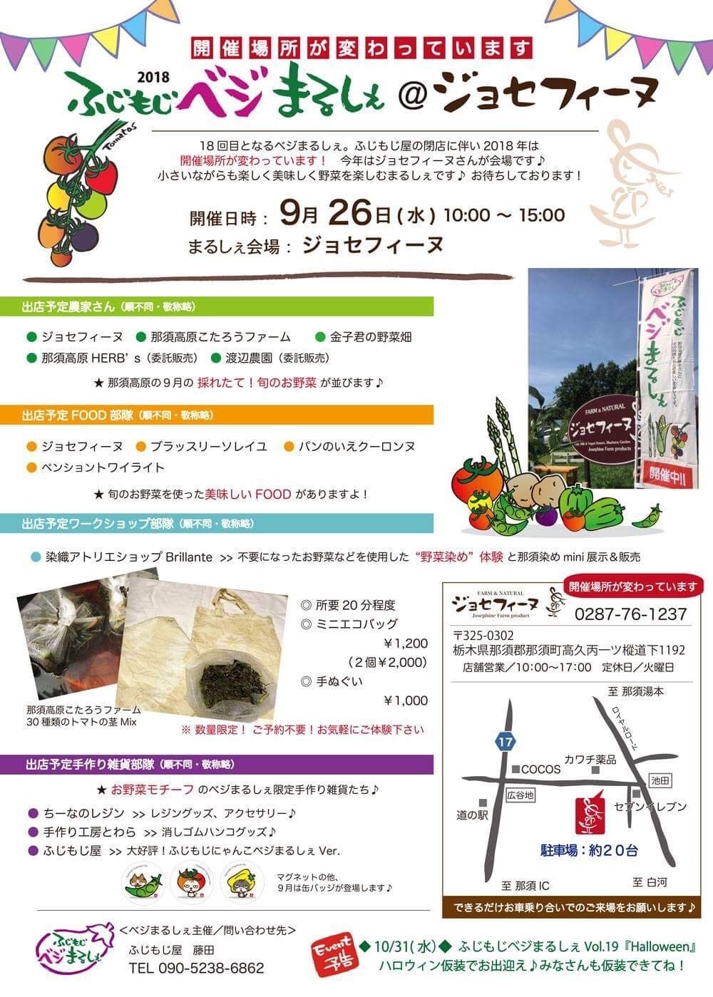 今日は連休明け26日(水)に開催される「ふじもじベジまるしぇ@ジョセフィーヌ」のお知らせです^_^