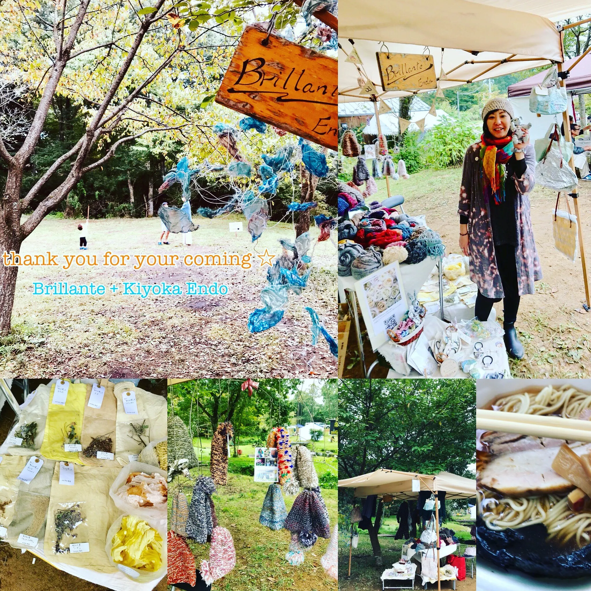 今日は「那須あーとクラフトフェア」にて、Brillante販売作品と一緒に「那須染め」(本日は'秋の七草染め'を実際の植物と共に持参しました♪)とプロジェクトのご紹介もしたのですが、沢山の方々がお立ち寄りくださり、お話したり、ご説明したり、午後から雨シトシトでしたが、気持ちは晴れ晴れ、あっという間の1日でした(o^^o)