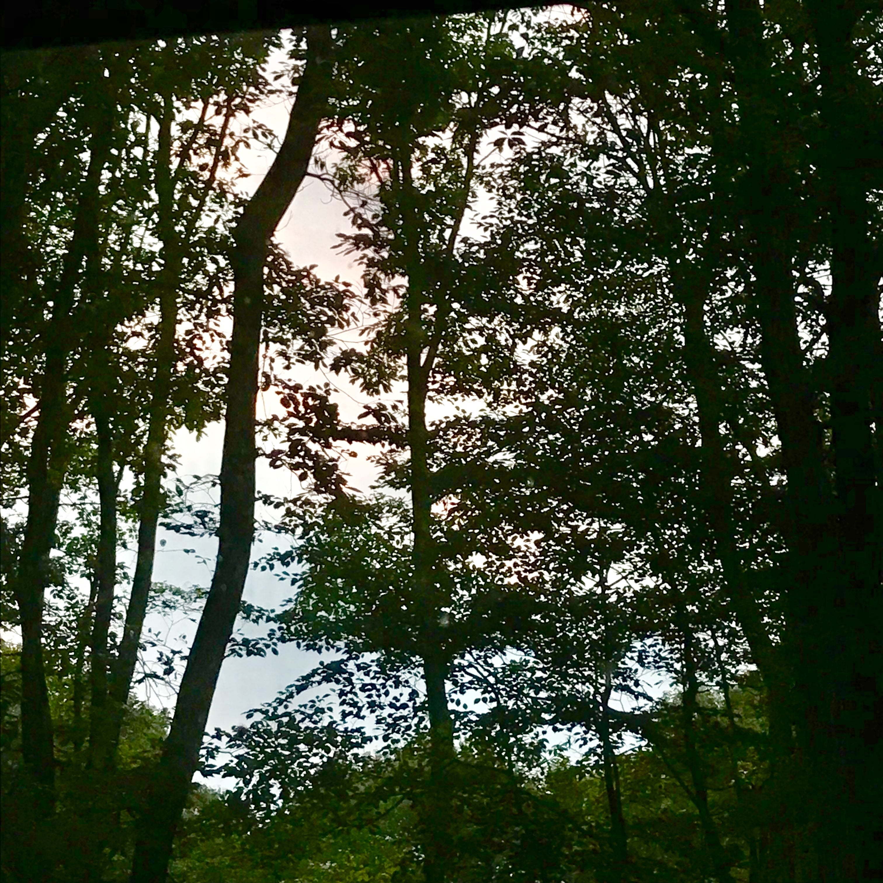 (画像はいつも眺めている裏の林の木々の様子☆今朝は不思議な空の色が見れました♪♪( ´▽`))