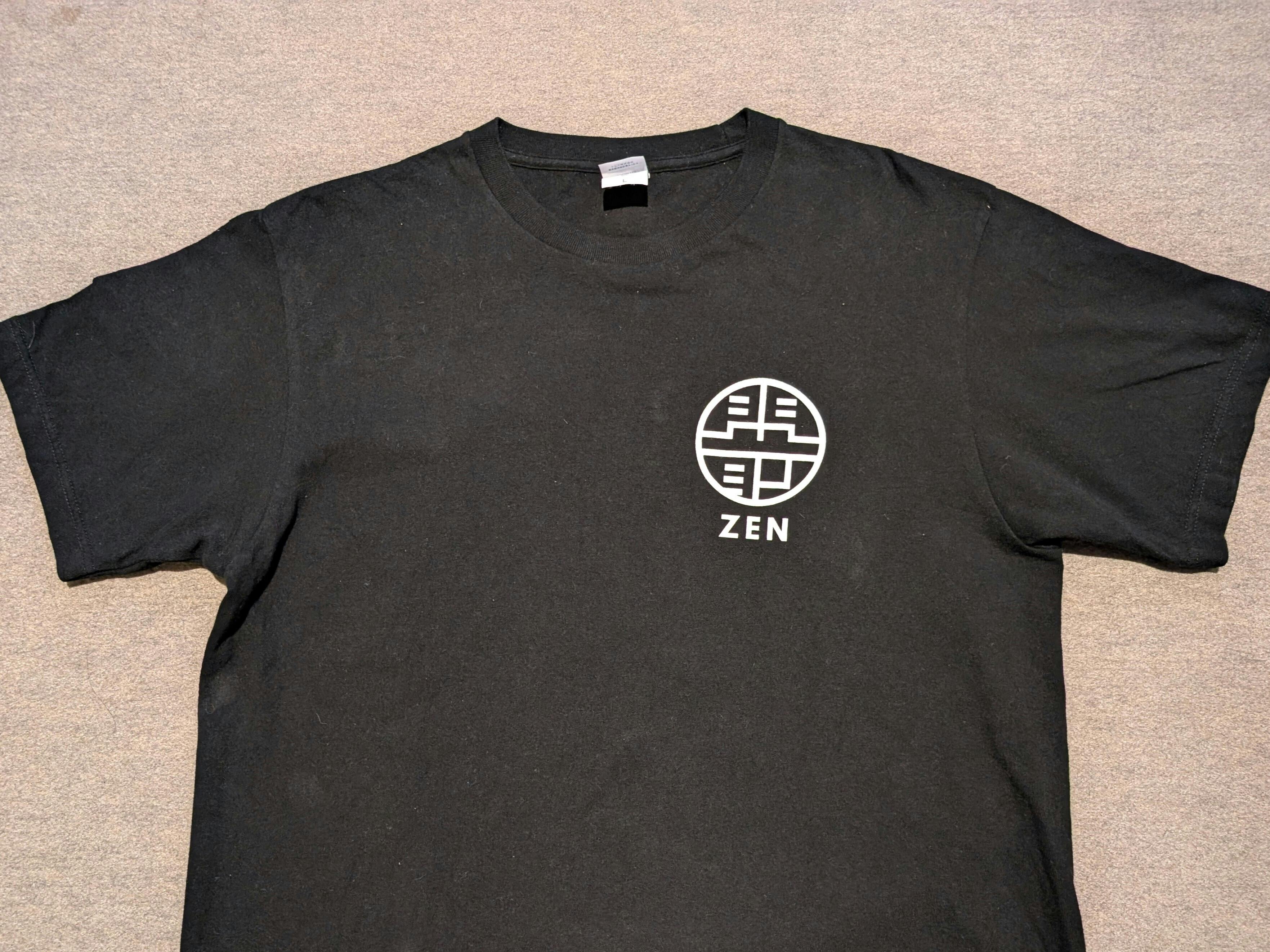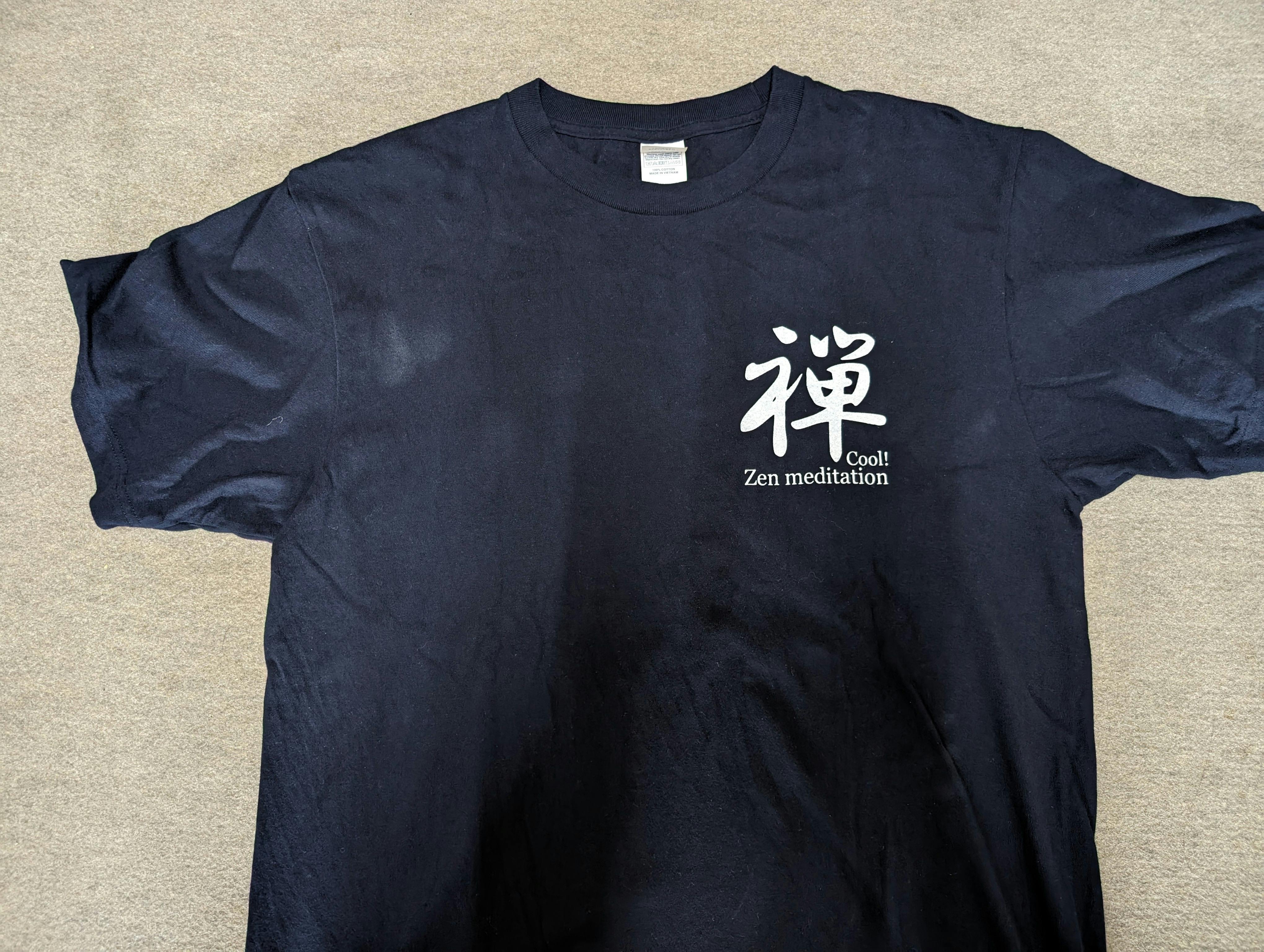 トップ画像の「ふわふわくまさんTシャツ(エンジ プリント前面のみ)」、「禅Tシャツ(ネイビー、背面は故・板橋興宗禅師の筆による円相)」、「門前ロゴTシャツ(黒 胸と背面にプリント)」の3種をご用意しています。