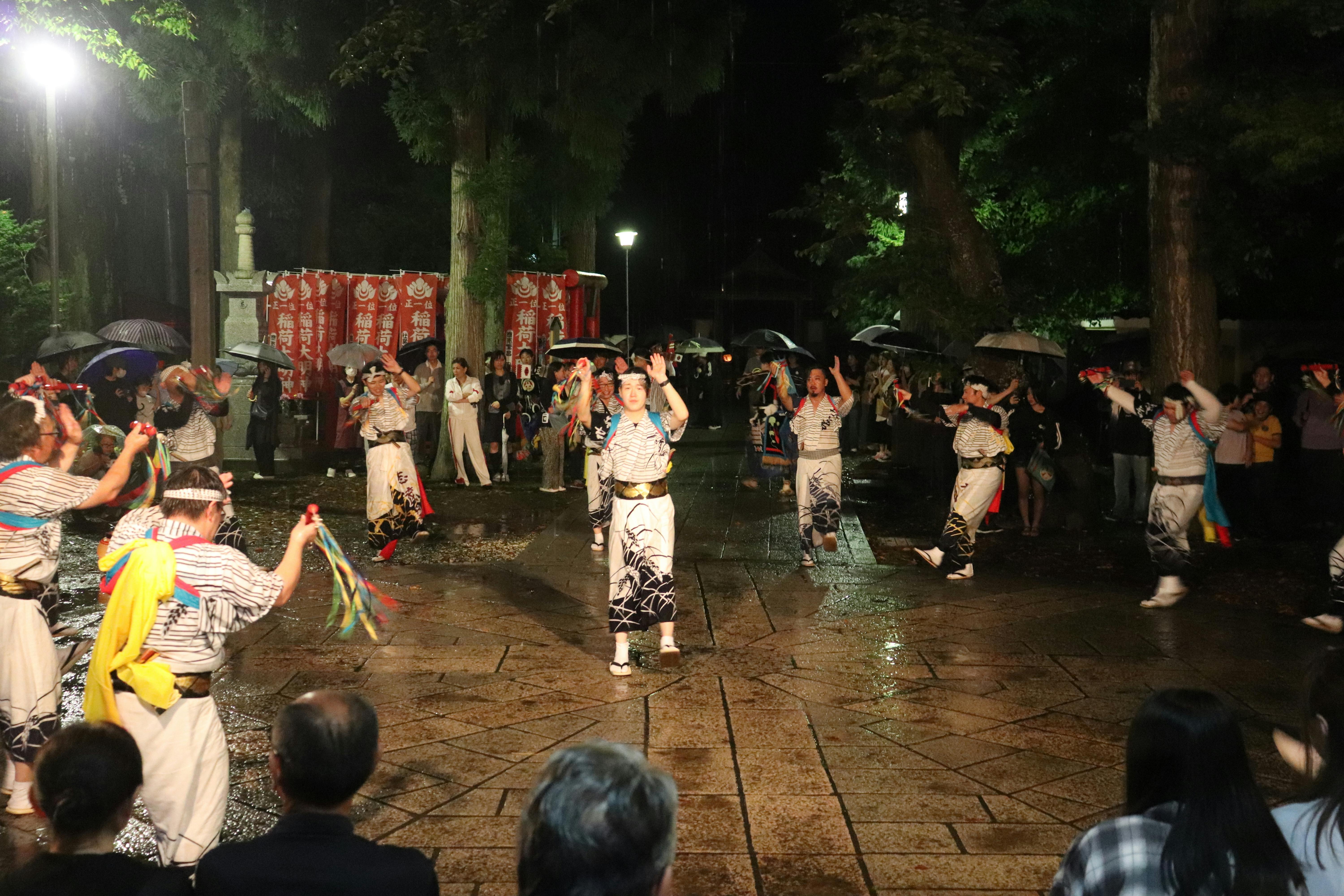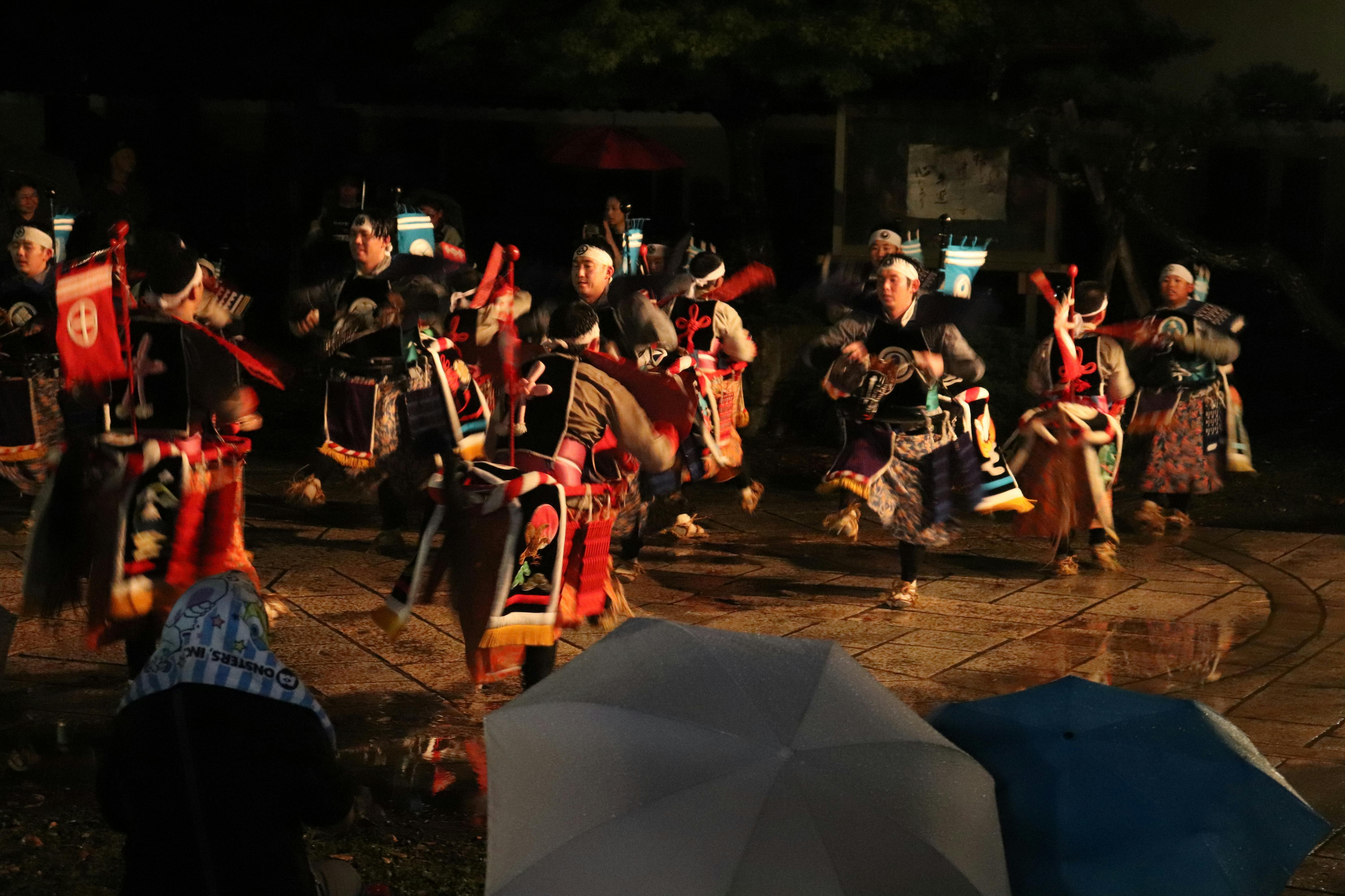 途中で雨が強くなる時間帯もあり(駒踊りや獅子踊りの衣装は濡らすと修復がタイヘン…)、休憩を挟みながら一部演目の省略もありつつ、町内外からお越しの大勢の見物客から大きな拍手が送られました。優美な奴踊り