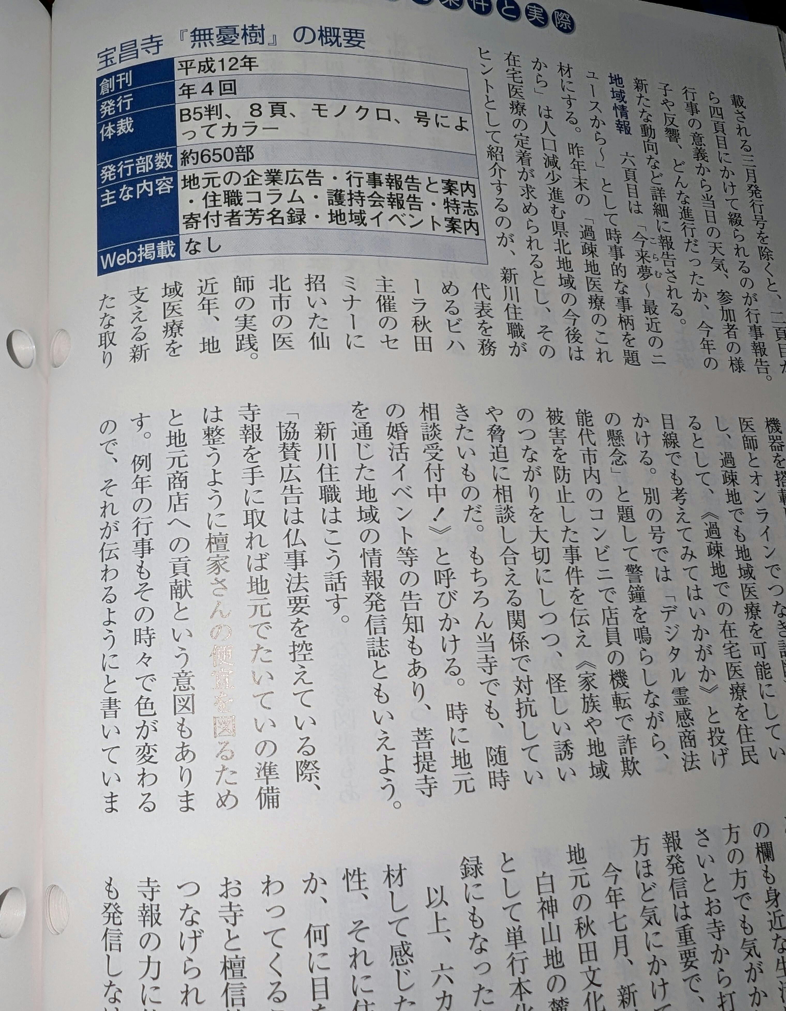 記事の中では『無憂樹』100号記念として今回発刊した『宝昌寺だより -白神山地の麓 藤琴川のほとりから-』についてもご紹介いただきました!