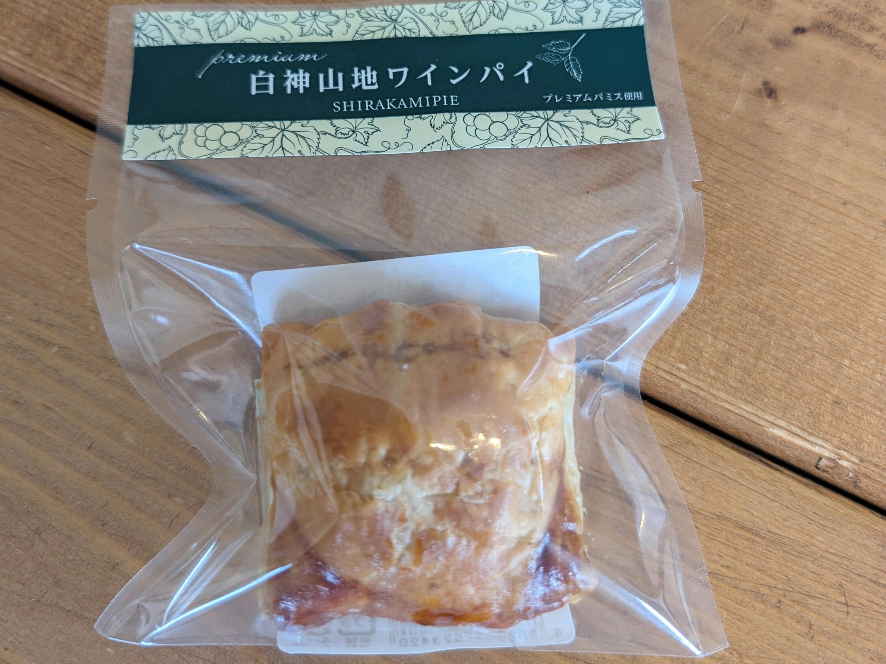 上記の「白神山地ワイン」醸造の際に生じるプレミアムパミスをパイ生地に挟んだ逸品です。サクサクのパイと甘酸っぱいブドウの風味がベストマッチ!