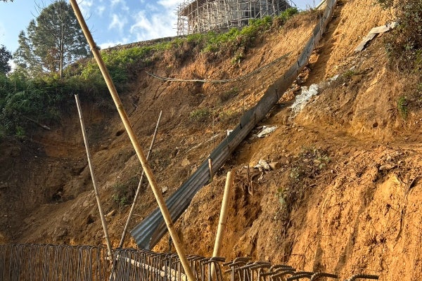 土地の復旧工事:7,8割程完成しつつある仏舎利塔の土台となる所が崩れ落ちてしまい、この基礎部分を復旧させないと、もし大雨等が来ましたら完成を見ないままに倒壊の恐れがあります。なので早急な復旧と建立を目指しております。