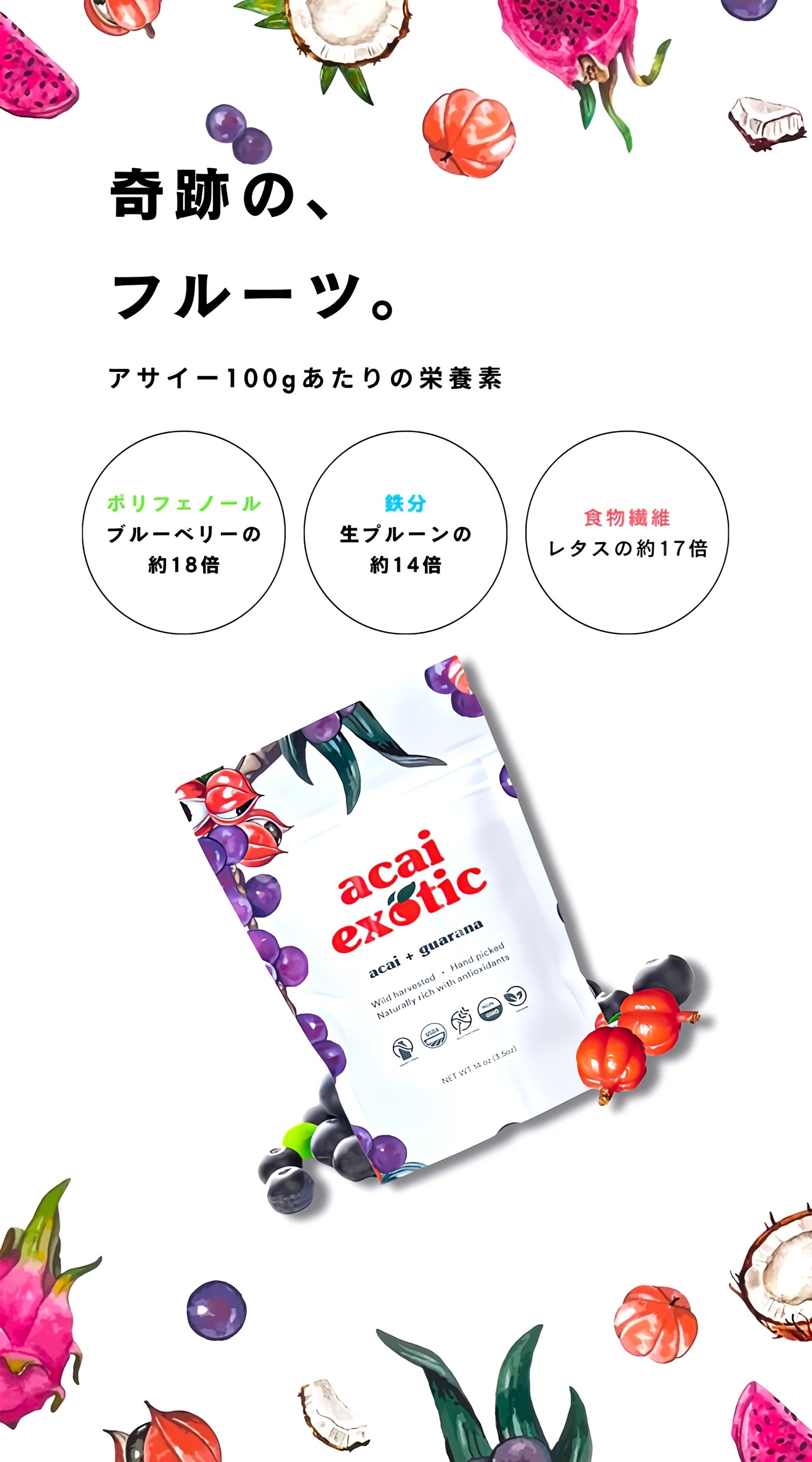 そんなアサイーを本気で愛する私たちだから見つけることができたアメリカで大人気のアサイーピューレ、ACAIEXOTICを日本で販売できることになりました。