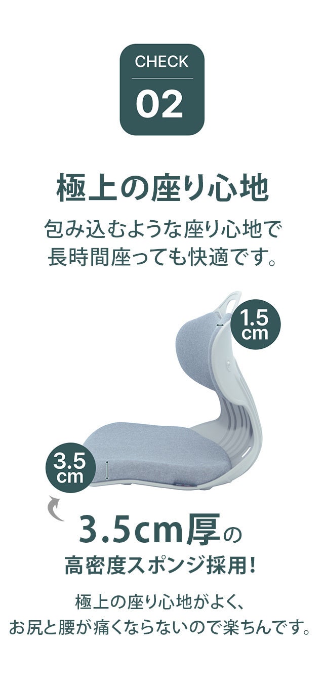 座りたくなる心地よさ、自然に『座る』!極厚クッションで理想の骨盤状態をサポートします。