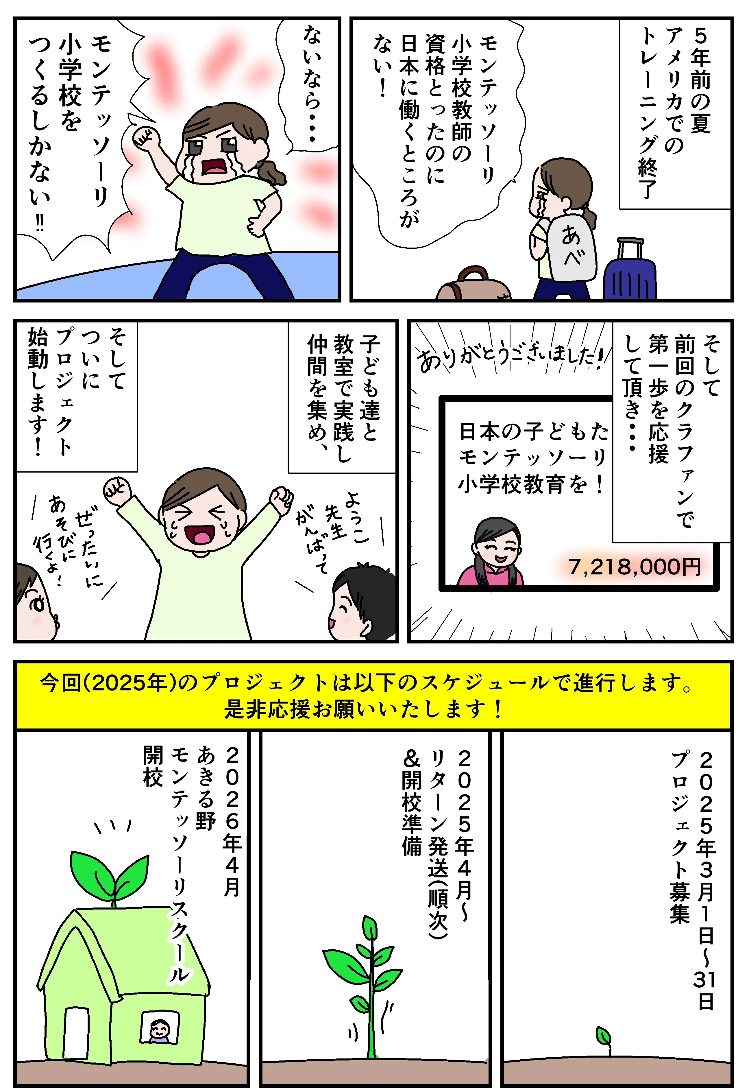 ②2025年 3月31日(月):あきる野モンテッソーリスクールのクラウドファンディングの支援募集 終了