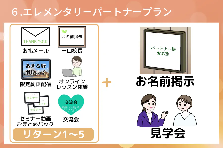 【6. エレメンタリーパートナープラン 〜未来の教育の発展への全力応援〜】 100,000円