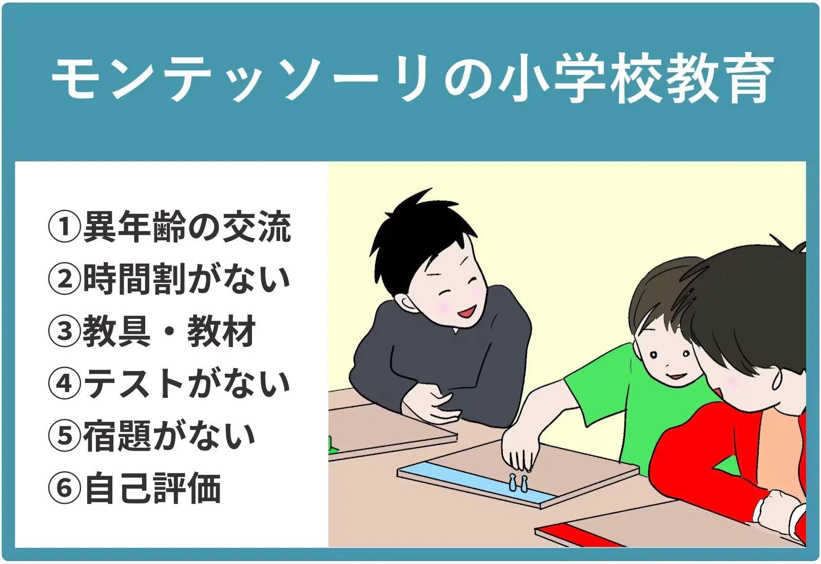 ⑤宿題がない:モンテッソーリ小学校では、子どもが十分に休み、豊かな子ども時代を過ごすために宿題を課しません。家庭では料理や読書、スポーツ、工作などを楽しむことを推奨しています。