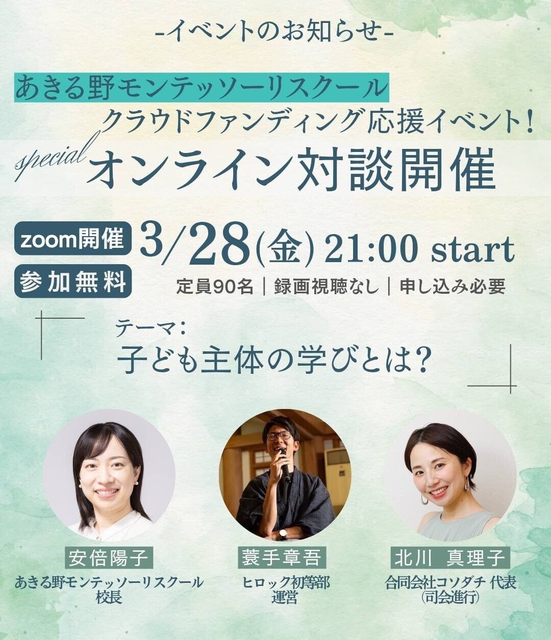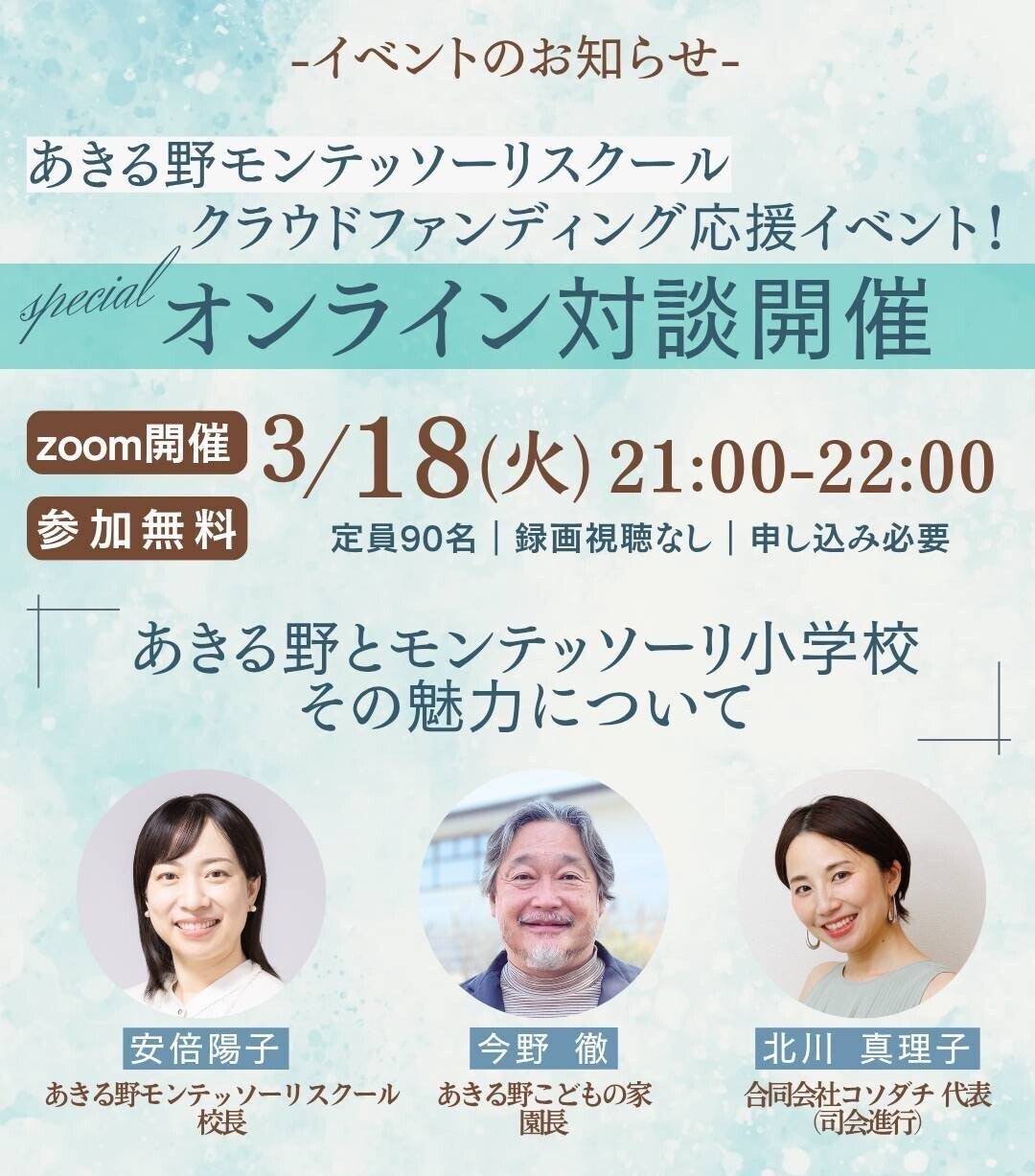 【3月18日開催「あきる野とモンテッソーリ小学校、その魅力について」】