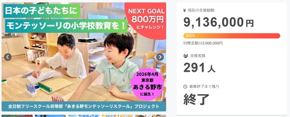 このたび、2026年4月の開校を目指す「あきる野モンテッソーリスクール初等部」のクラウドファンディングが、昨日をもちまして無事に終了いたしました。