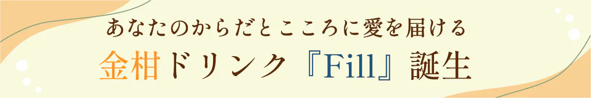 そして第一弾商品として、熊本県産の金柑を使用したナチュラルドリンク『FIll』を製造。