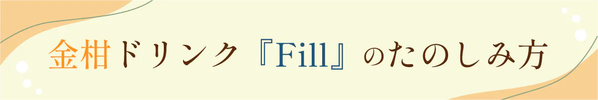『FIll』は、あなたの気分や体調にあわせて希釈できるクラフトシロップ型のドリンク。メイン素材に、熊本の果物農家「ハナウタカジツ」さんが愛情こめて大切に育てた金柑(キンカン)を皮ごとまるごと使用しています。「ハナウタカジツ」さんの金柑は、生でも皮ごと食べられるほどやわらかく、透き通る甘さとほろ苦さが絶妙に重なり、爽やかな余韻がふわりと口いっぱいに広がるのが特徴です。