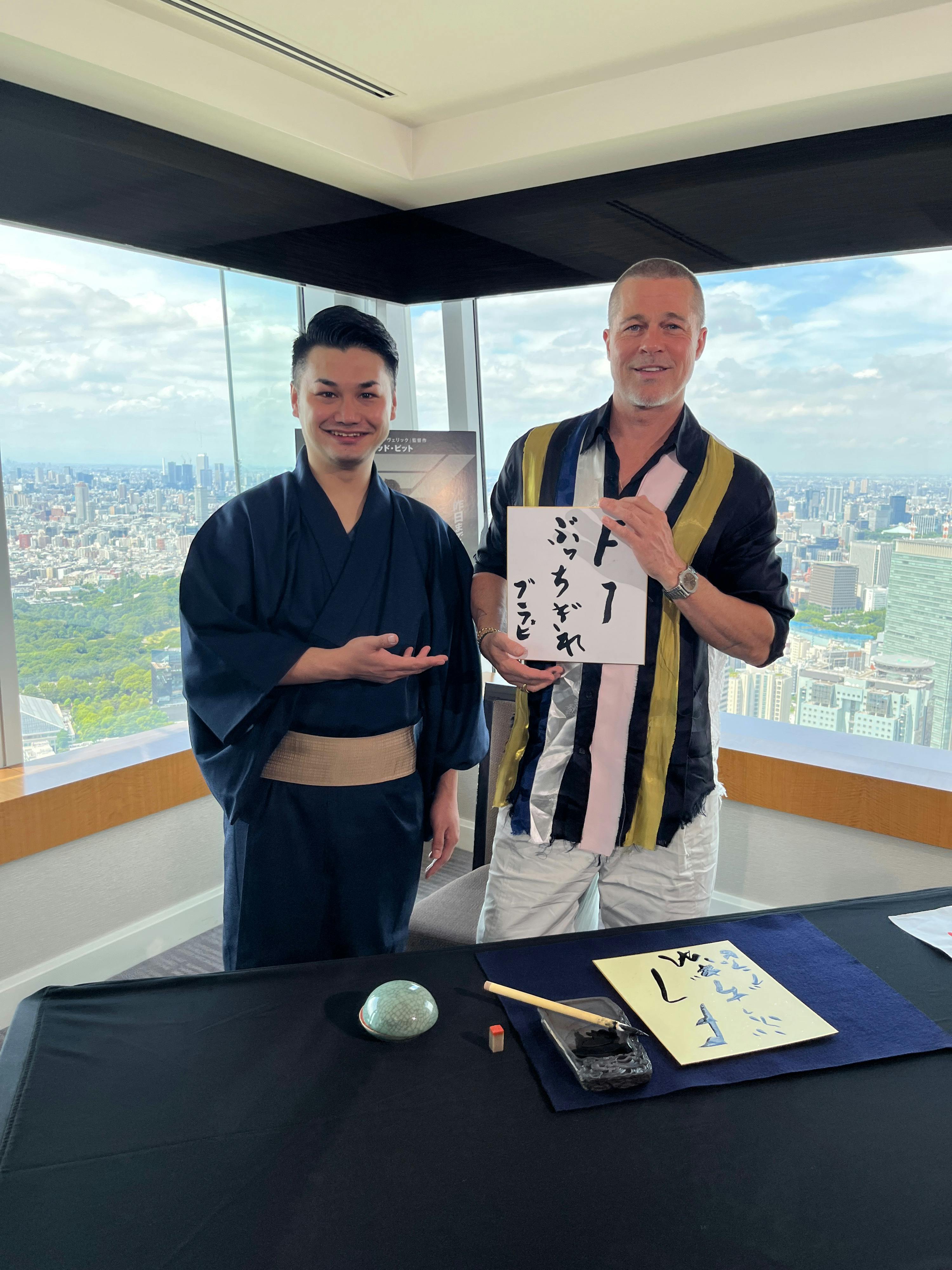 ブラッドピッド氏に書道指導しました。