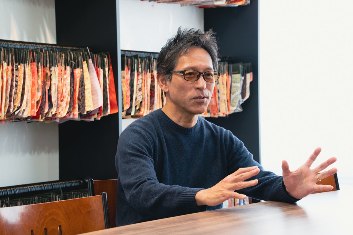 お話を伺う中で西陣織が現代の中で置かれている状況や問題・課題を知るとともに、新しい可能性や汎用性についても気づかされ、『ぜひ、製品づくりをさせてください』とお声がけしました。