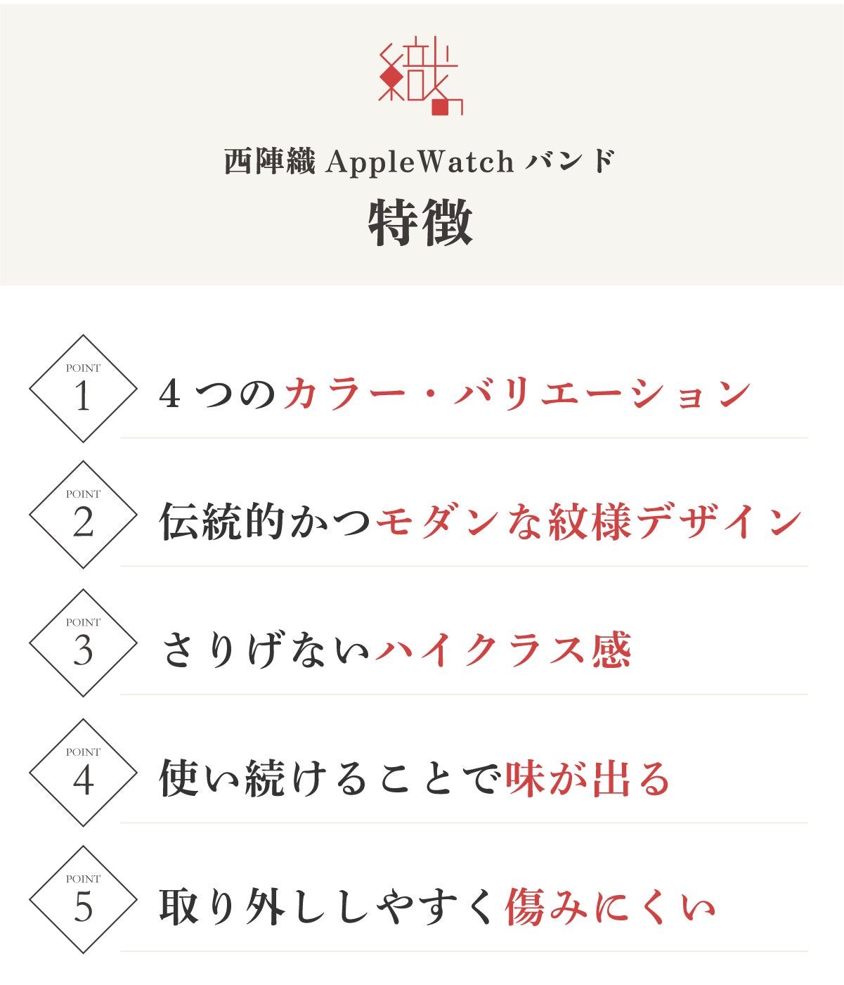また、布製Applewatchバンドにありがちな“ホール周辺の劣化”が少ないよう、金具にはバックルを採用。