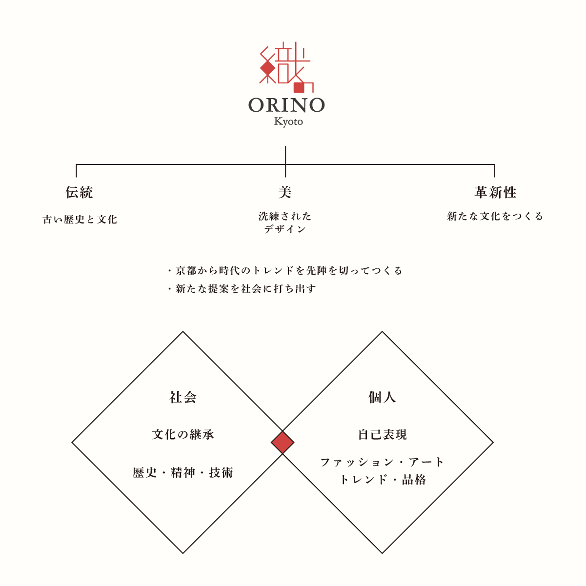そこで私たちは西陣織の新ブランド“ORINO(オリノ)”を立ち上げ、既存の枠に捉われない新しい商品を企画・開発をスタートしました。
