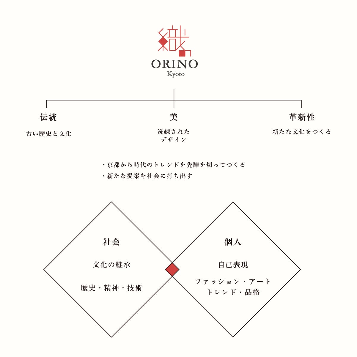 ぜひこの機会にORINOを手に取り、身に付けて頂き、この西陣織という生地のもつ美しさと素晴らしさを体感して頂けたら幸いです。