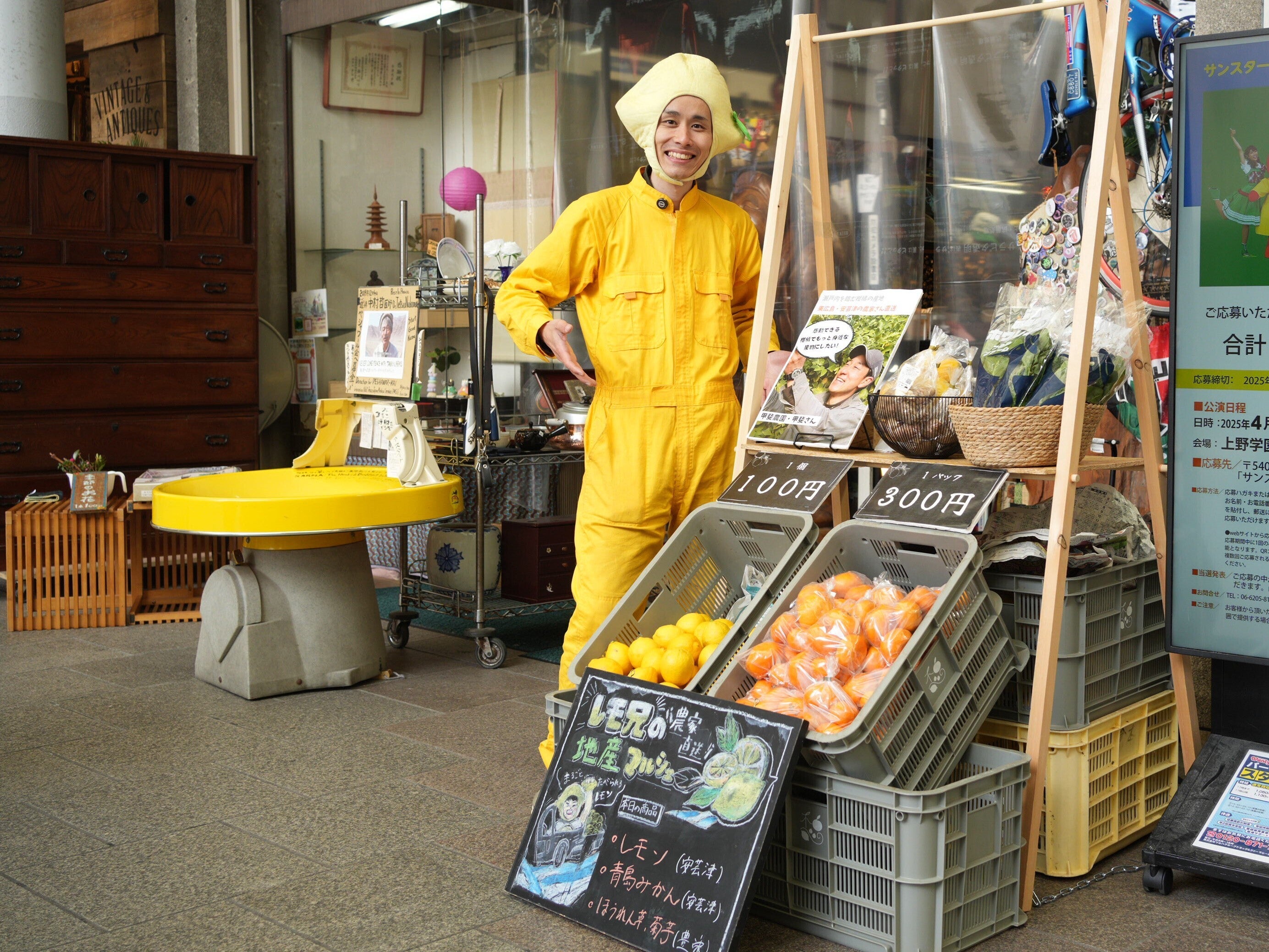 そんな地元の生産者のもとに赴きインタビュー取材に始まり、果物や野菜を仕入れて商店街で露店販売、飲食店へ配送などを行っています。これからは卸問屋「レモ兄商店」としてきちんと開業して、ECサイトで『レモ兄厳選!里山から里海まで詰め合わせセット』など販売していきたいですね!