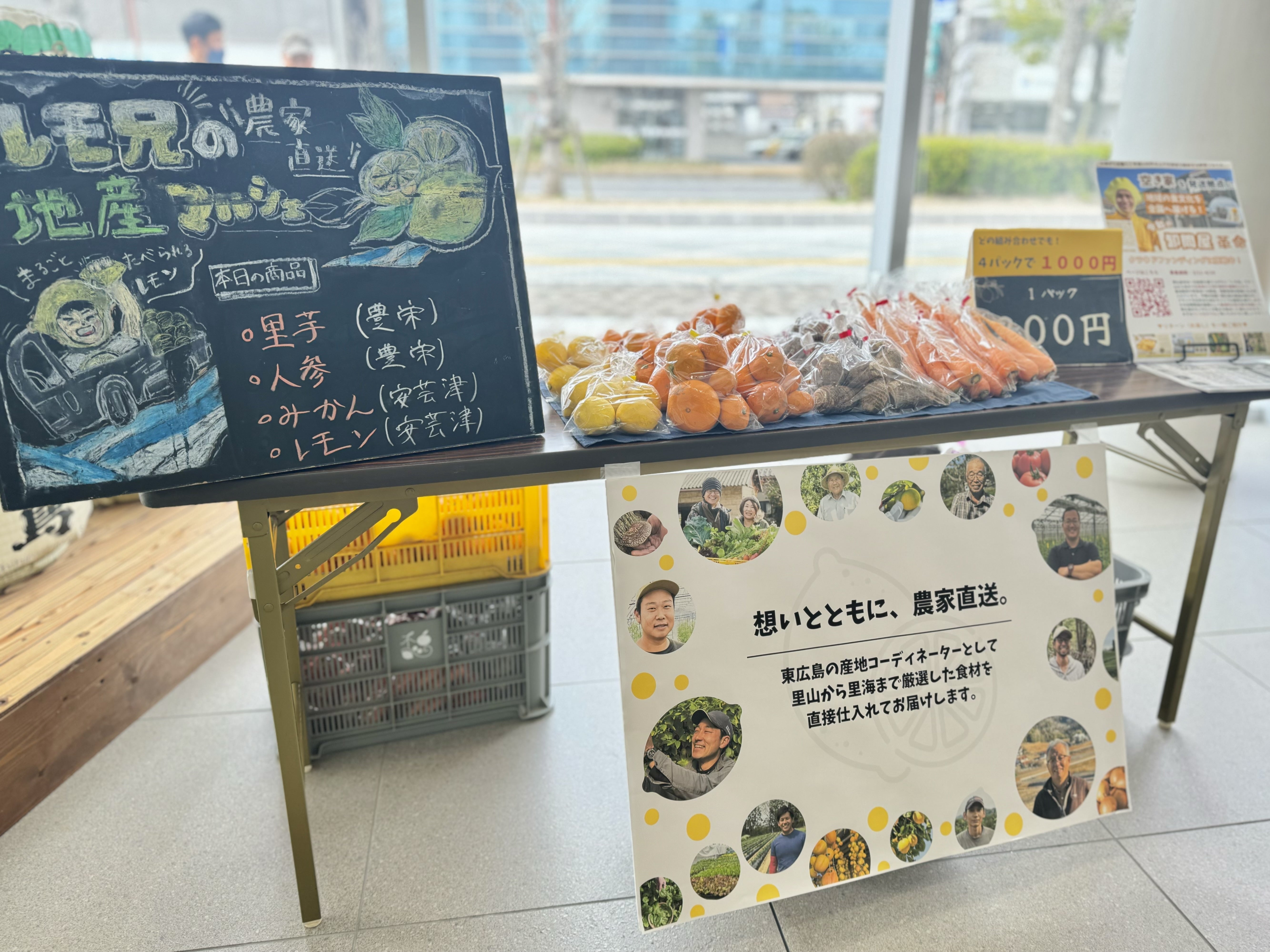 「円陣」の中でも東広島内で露店販売できる場所を探していた時に、市役所1階の貸出しに快く協力してくださりました。今では毎週木曜12-13時の「地産マルシェ」は僕の中の習慣になってきました。