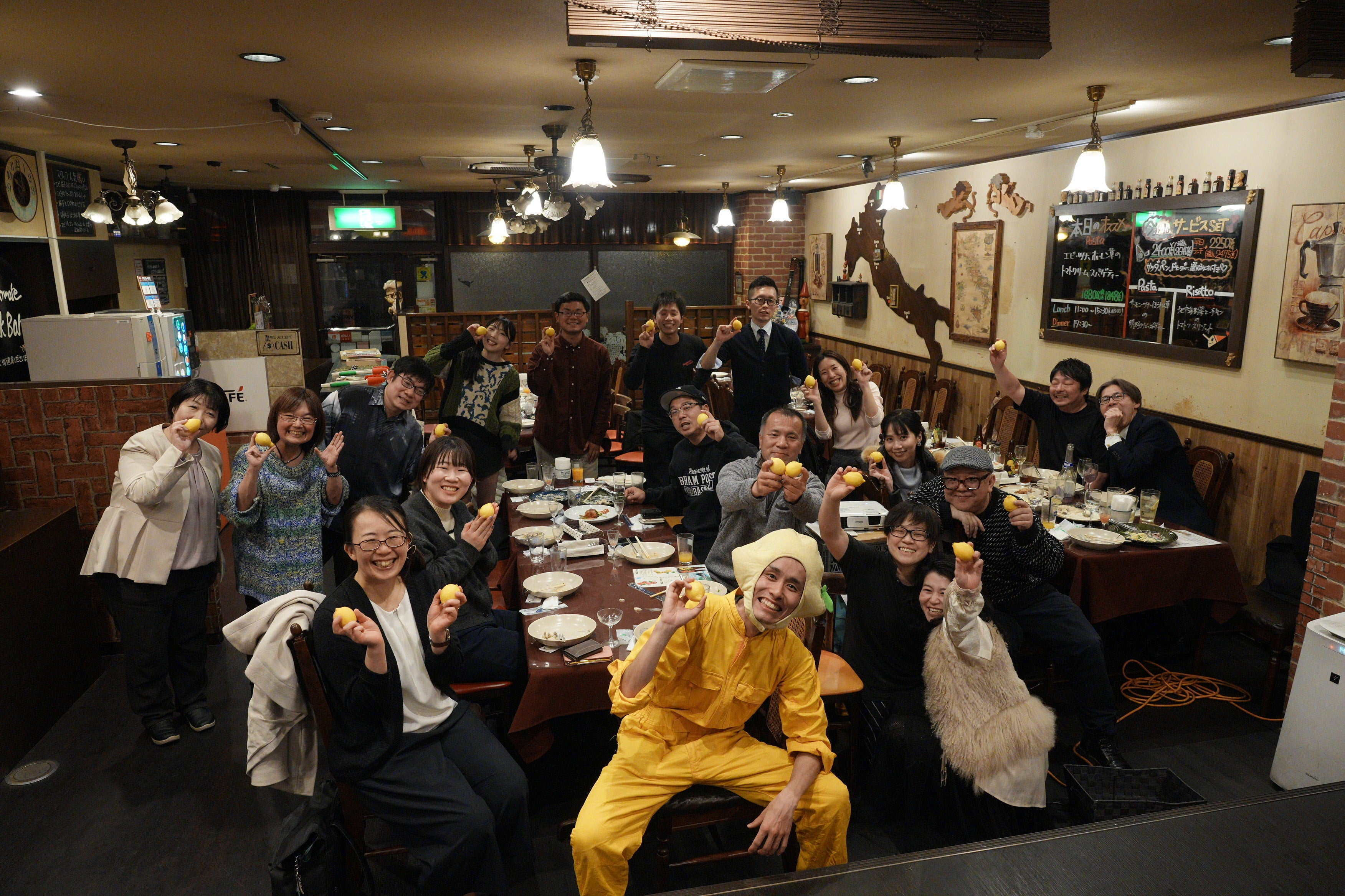 クラファン公開日に「レモ兄オフ会」を開いてきました!人生初となるオフ会...まさか自分が開くことになると思っていなかったです。今回はなんと計42名もの方にご参加いただきました!!(写真が帰りがけで半分ほどの人数なのが勿体無い)自主制作番組「ひろしま青空レストラン」をスクリーンで放映して、番組内で紹介した、牡蠣とレモンを使ったパスタやマリネをコースディナーとして提供させていただきました!生産者の方や出演メンバーにも来ていただいて本当に良かった!西条の老舗イタリアン・Pasta amareさんに全面協力をいただき、店内は貸切に!皆さんの愛に包まれた素敵な会となりました。「レモ兄写真撮って!!」「いい繋がりがたくさんできた!」など温かい言葉をたくさんいただきました。自分が自信を持ってお届けして、喜んでもらう価値を改めて体感した気がします!準備不足なところもありましたが、クラファン初日に最高のスタートダッシュを切れたのでは無いかと思っています!来てくださった方の期待を超えられるよう、走り切ります!!