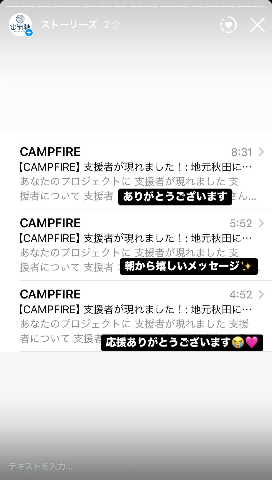 支援してくれる人が現れるとメールでお知らせが来るなんて!初めてのことなので知らなかったです。