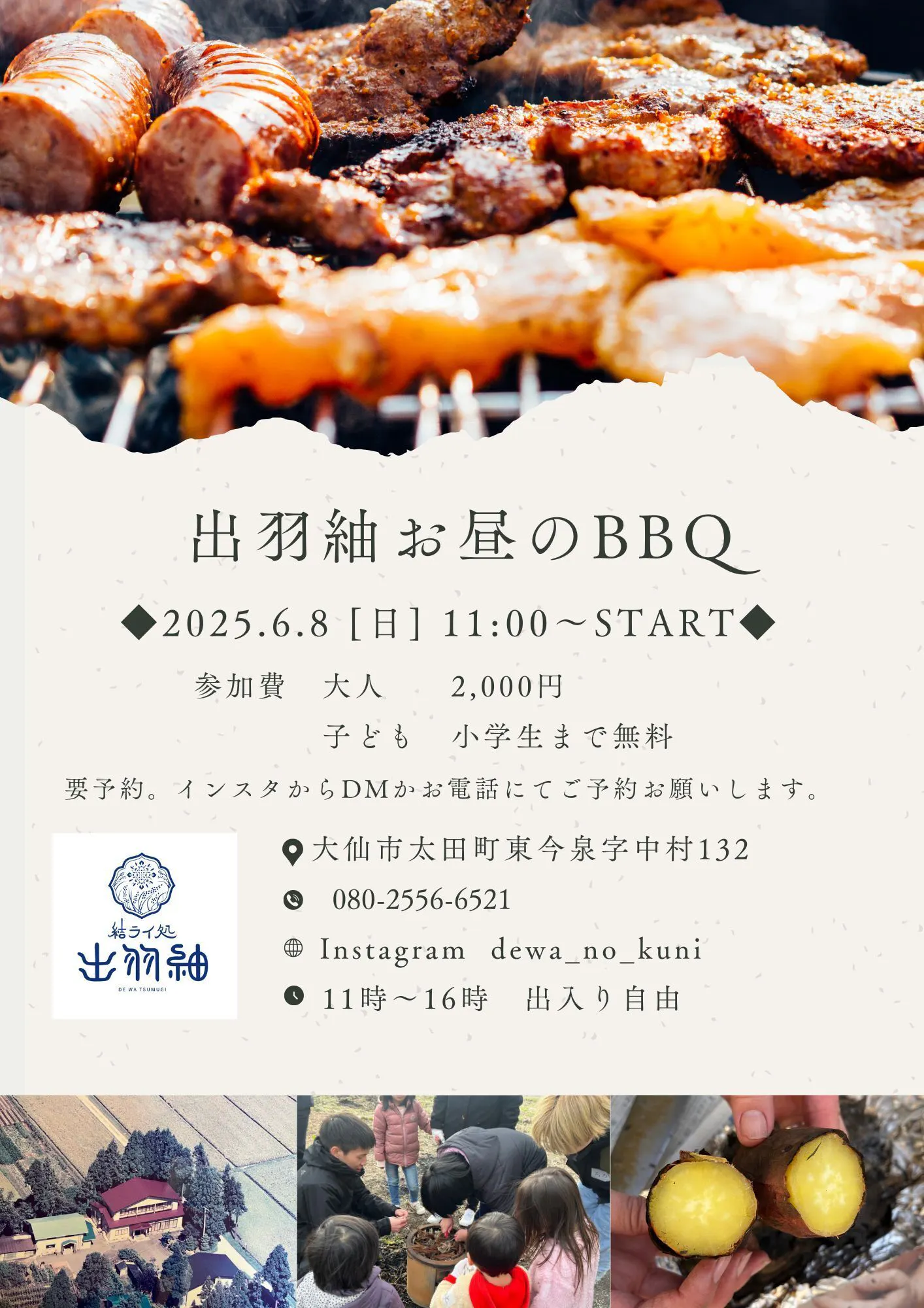 6月8日 日曜日に、11時から出羽紬でバーベキューイベントを開催します!