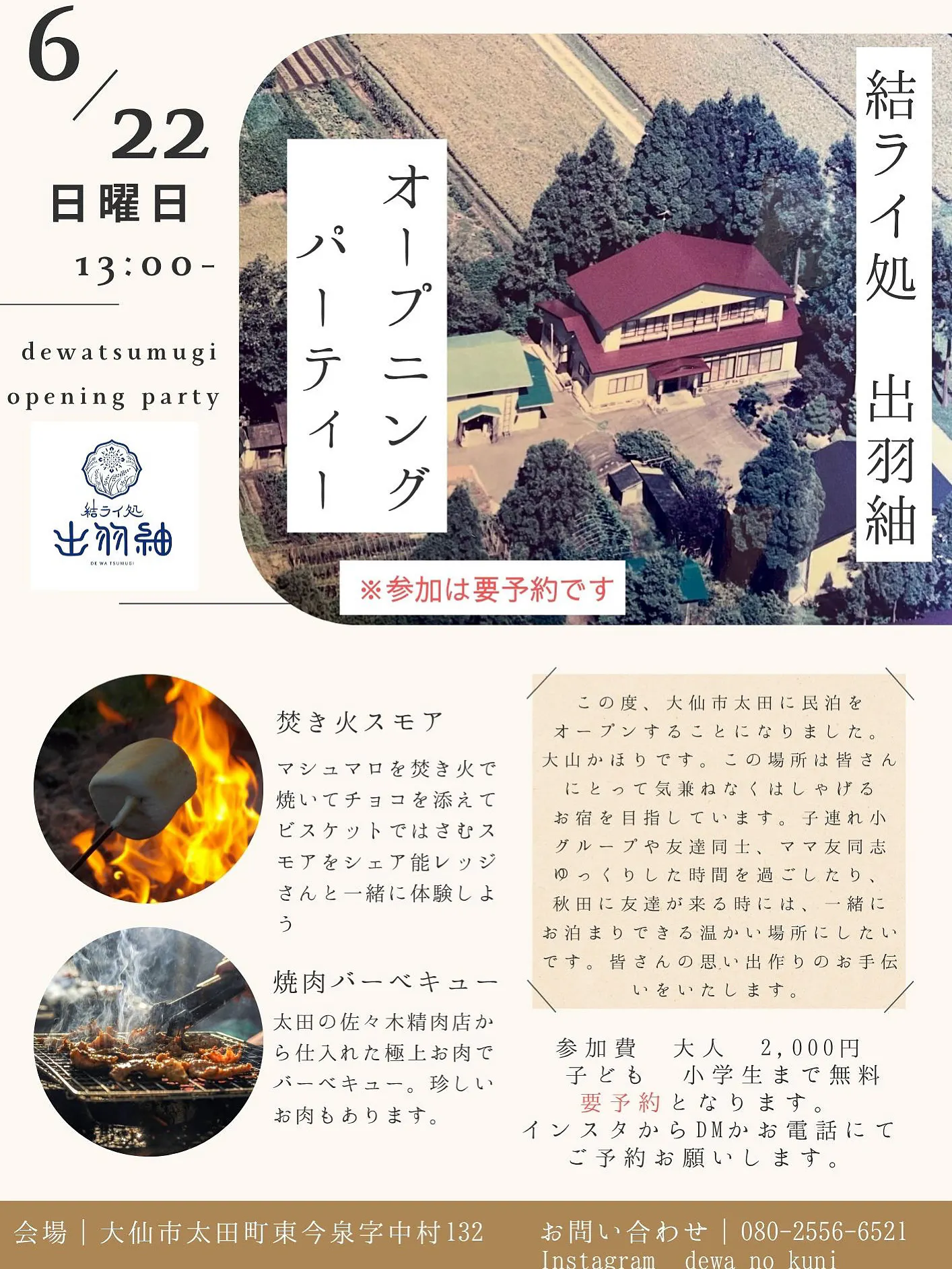 6月22日日曜日13時から出羽紬オープニングパーティー焚き火BBQ