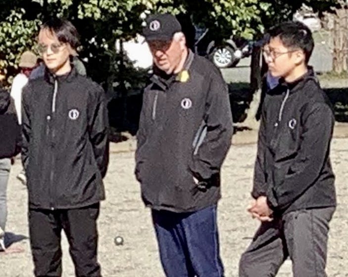 左から、岐阜大学ペタンクサークル副部長のハツシ、顧問のジル、部長のハルヒト