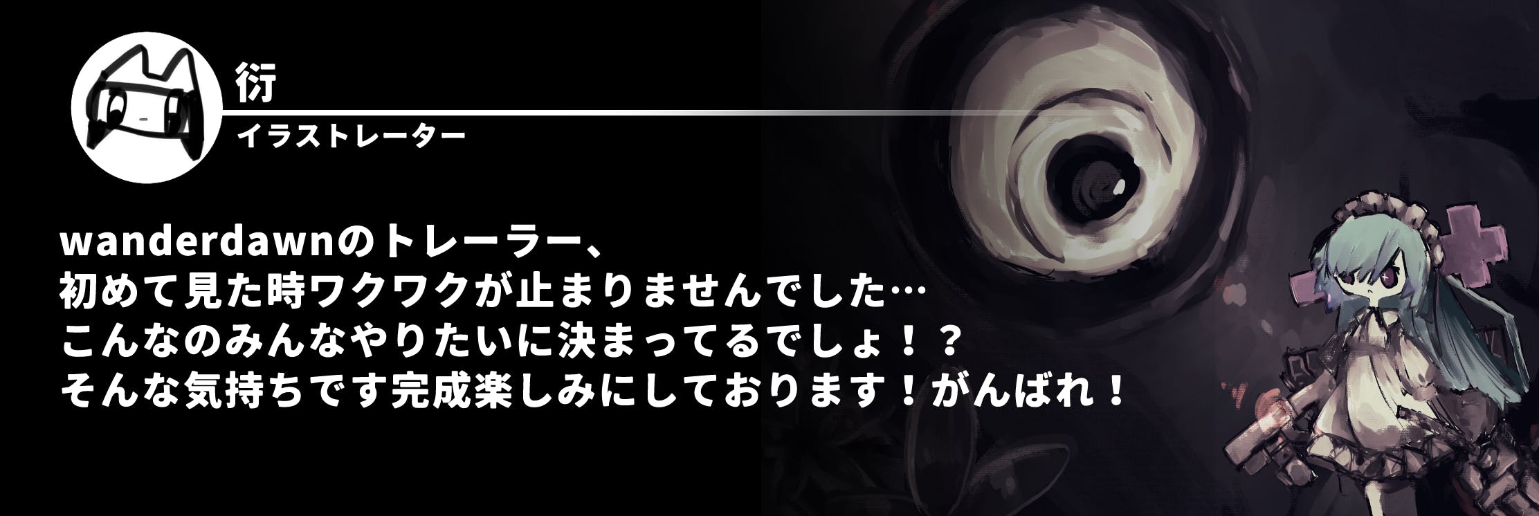 私の作る世界を皆様に届けたいという思いで開発を続けていましたが、このままではwanderdawnを含む今後のゲーム開発の全てを断念することになってしまうため急遽クラウドファンディングを行う決心をしました。