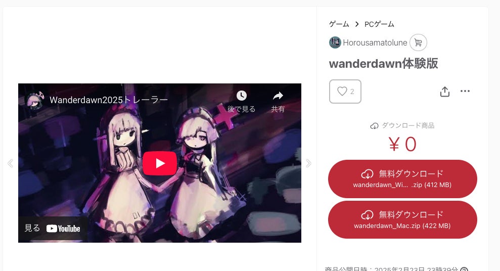 wanderdawnの現状体験版を公開しました!