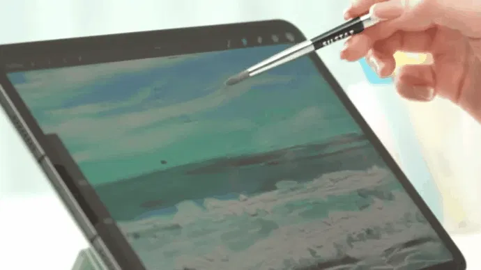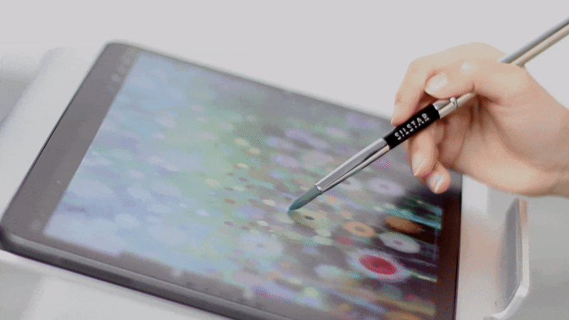 ある時、メーカー技術者がタブレットに硬いタッチペンで水彩画を描いている姿をみて、画面にカチカチ音をたてながら行っている姿に違和感を感じて筆先をもつタッチペンの開発を思いつきました。