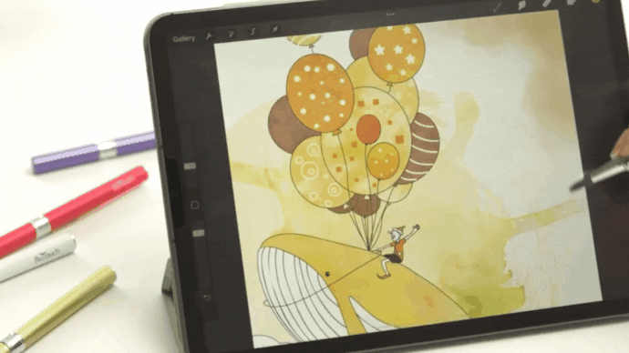 水彩画アプリでは水がにじむ感覚がペンからも伝わってきます。