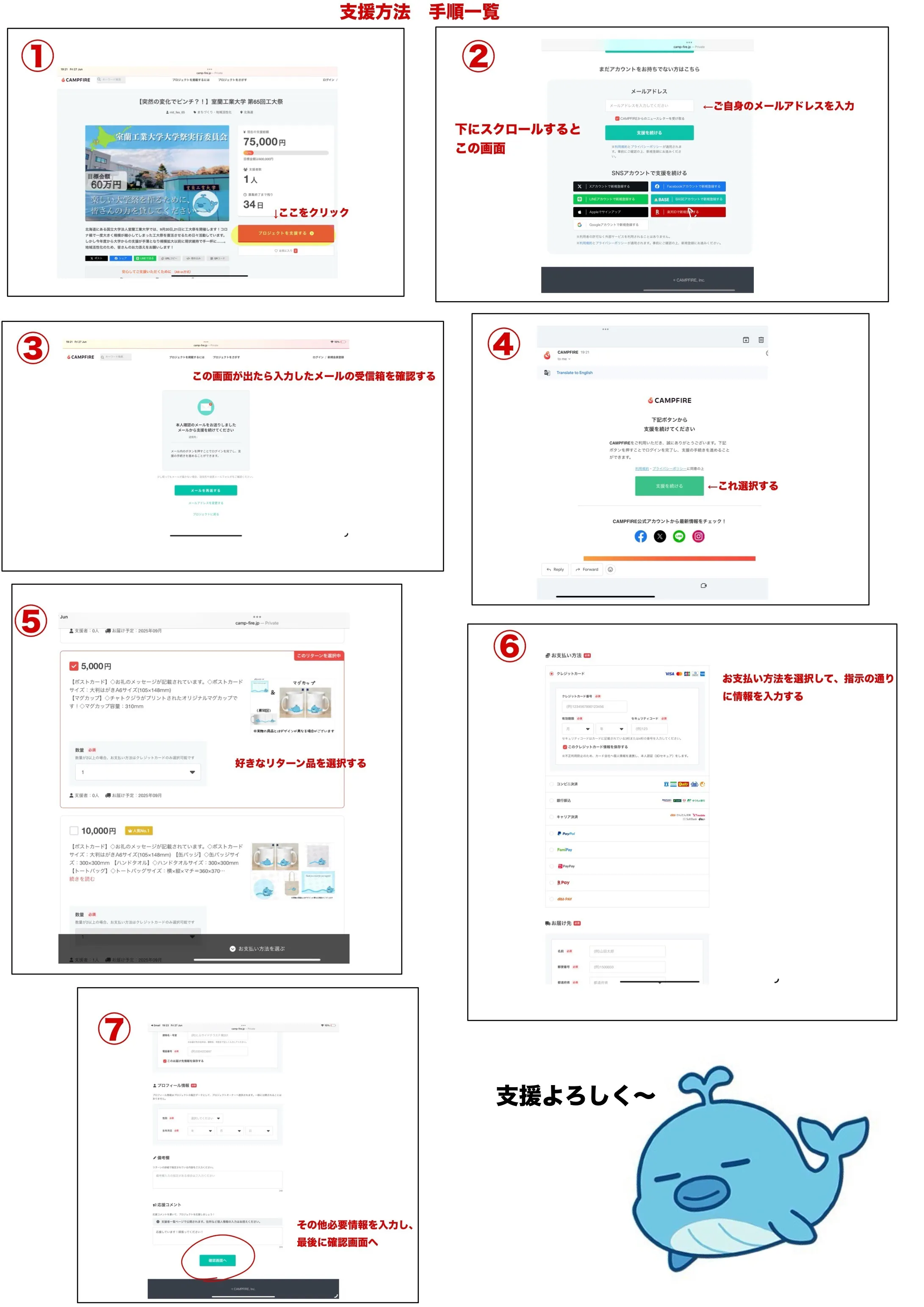初めての支援でやり方がわからない方向けに簡単ではありますが、手順をまとめたものを作成しました。是非参考にしてください!