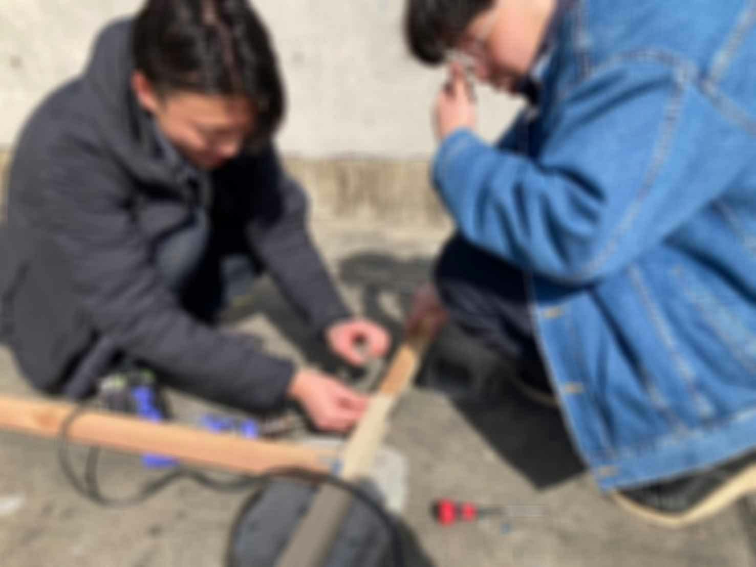 劇中で使用する、独立したドアと壁を作成している様子です。角材、板材を用いて自作しています。完成品はまた後日報告できればと考えています。