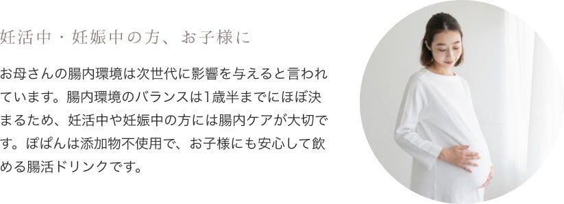 子どもからご年配の方まで、妊婦さんでも安心して飲んでいただけます。日常の中で手軽に腸内環境をサポートできるのが、ぽぱんの大きな魅力です。