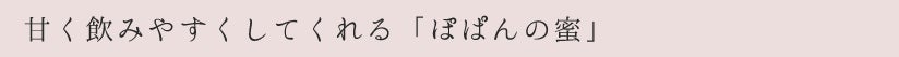 酸味が少し強く感じられる方には、飲みやすくするための「ぽぱんの蜜」というオリゴ糖と糖蜜をブレンドした商品もご用意しています。自然な甘みで腸内の善玉菌をサポートしながら、ぽぱんの酸味をマイルドに調整します。腸内環境を整える「ぽぱんの蜜」とともに、ぜひぽぱんをお楽しみください。