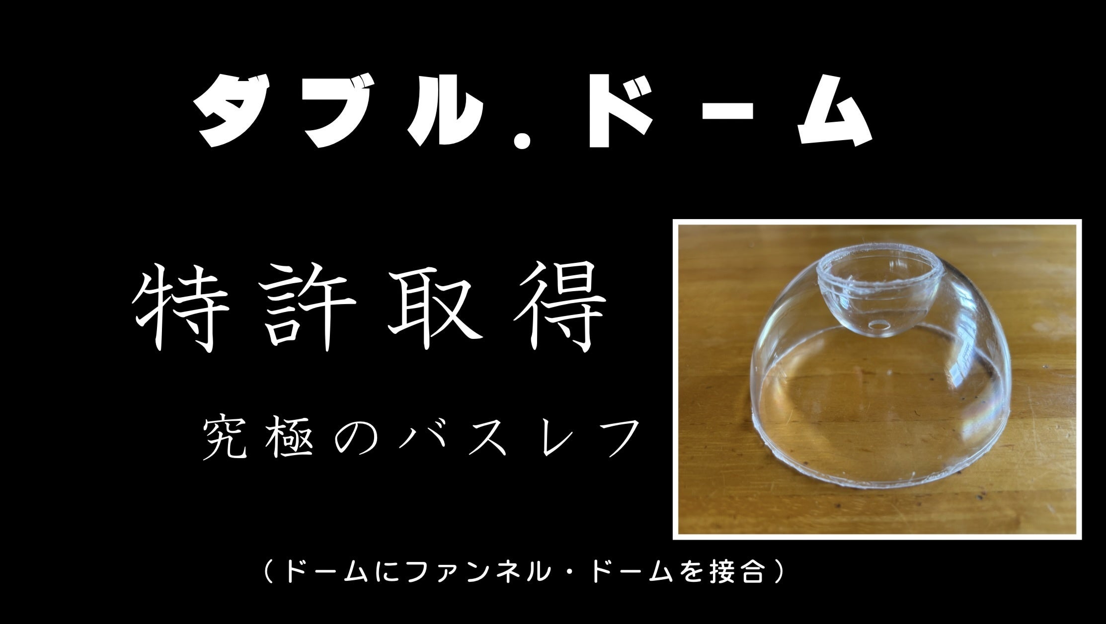 90Φのドームに逆向きの40Φファンネル・ドームを接合した、 全く新しい考えのバスレフです。これは「ダブル・ドーム」と呼ん でいます。たったこれだけで、少し音量を上げれば十分な音圧を体感できます。