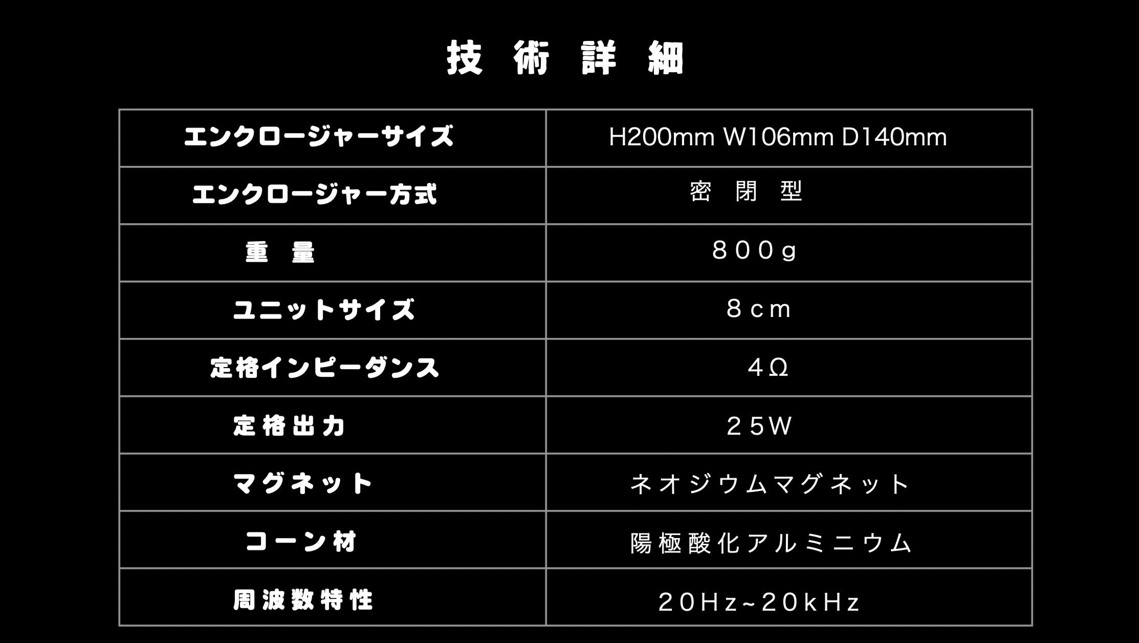 一番の特徴は、とにかく圧倒的な重低音を高い音圧で再生します。 従来のスピーカーは、どれも低音が貧弱です。エンクロージャが大 きくても小さくても、音楽の再生には重低音が大事です。どこのス ピーカーも、これが疎かにされています。重低音を再生するのは難 しいと諦めて、簡単な方に走っています。