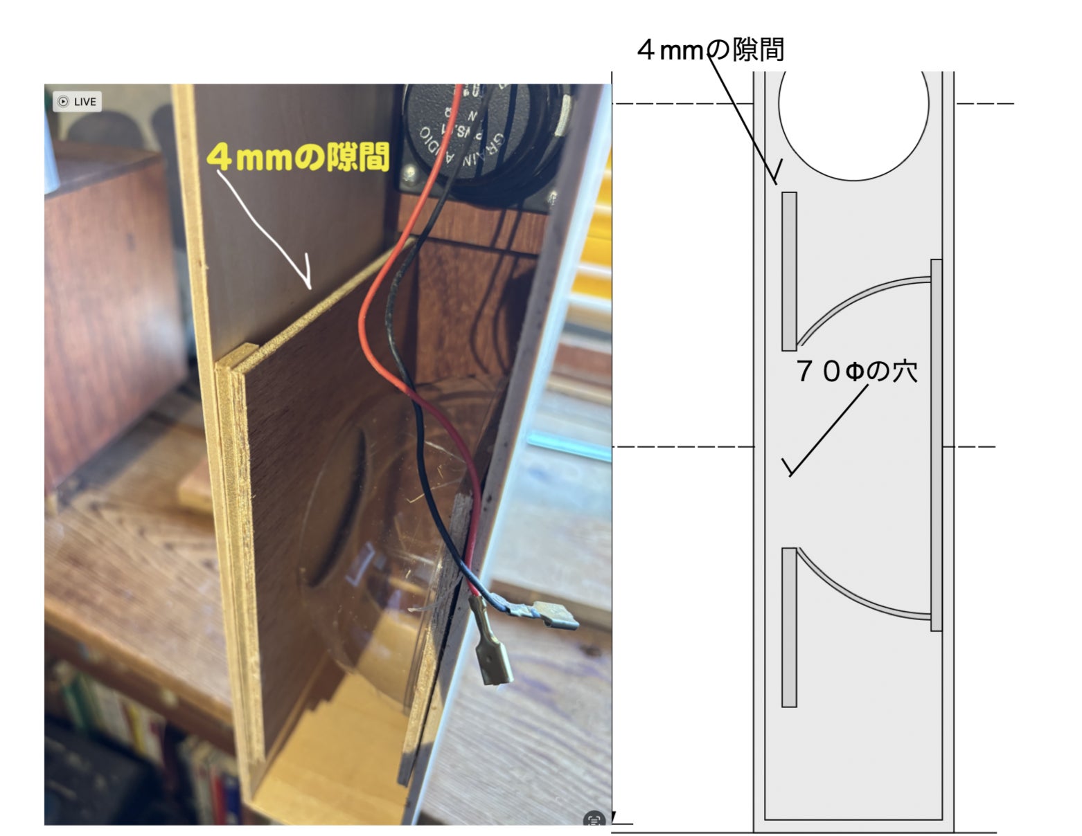 そこで新たに、昔考案した「ギャップ・バスレフ」を採用してみようと思います。これも特許取得しています。これも、圧縮と爆発の利用です。