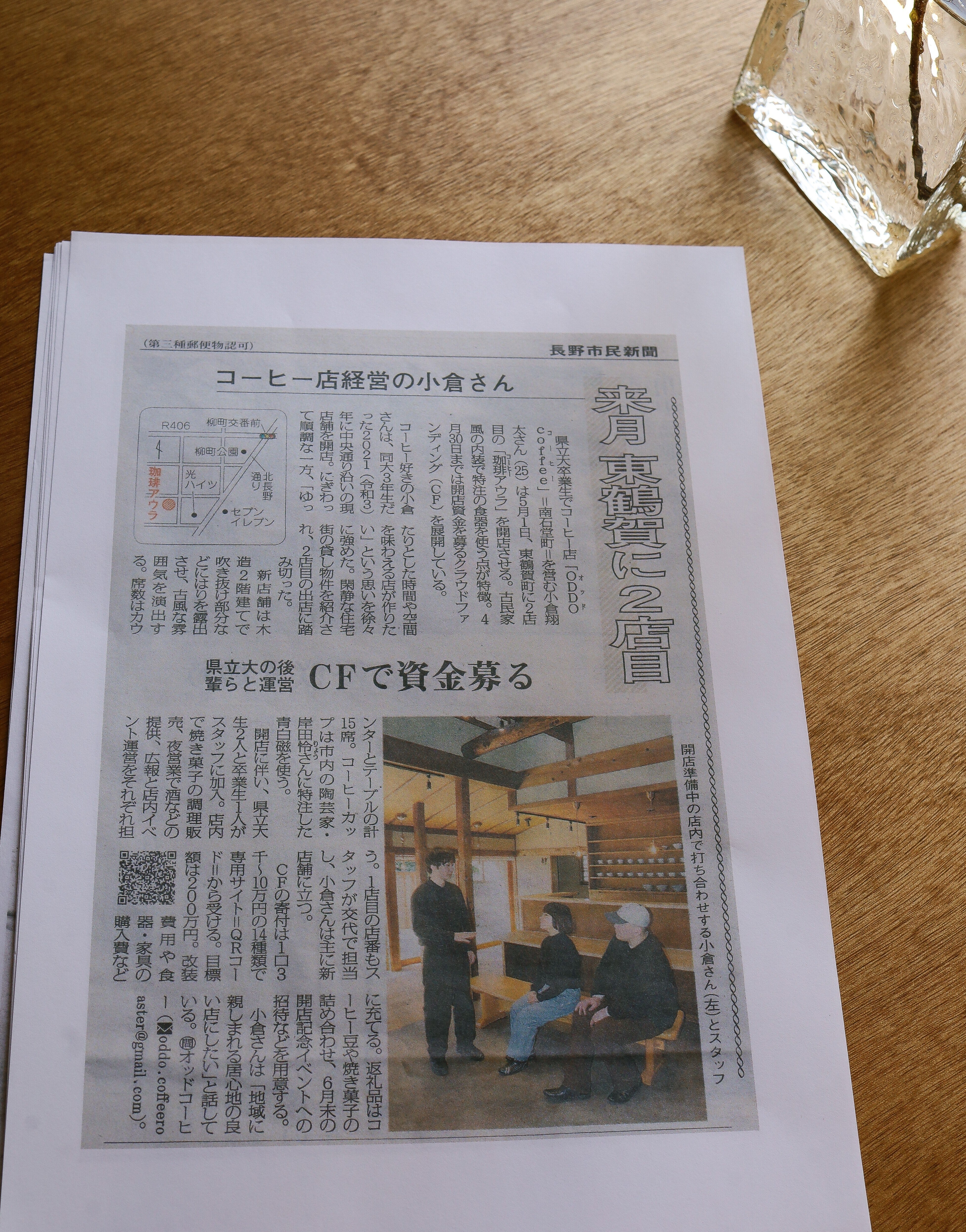 掲載後すぐに、オッドコーヒーのお客様や珈琲アウラの周辺にお住まいの方々からお声がけいただき、地元メディア・新聞のありがたさを感じました。
