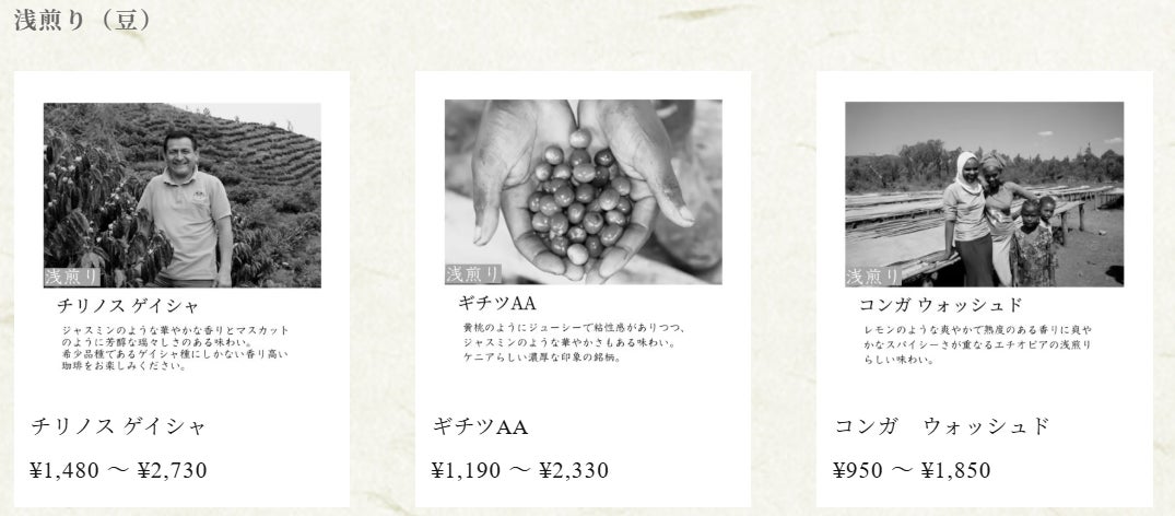 今後は、ドリップバックや器、季節のセット(コーヒー豆3種or5種と季節のお便りなど)などをそろえていく予定です。