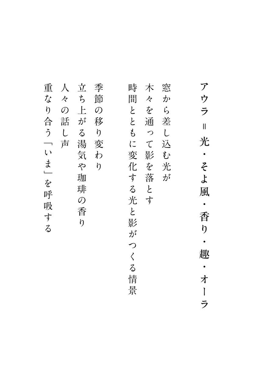 この地に根を下ろし、変わり続ける「いま」を共に楽しみたい。珈琲を淹れるひととき、人と語らう時間、静かに本をめくる午後。そんな何気ない瞬間に宿るかけがえのない価値。そのひとつひとつを大切にしながら、皆様と共に過ごしていきたいと考えています。
