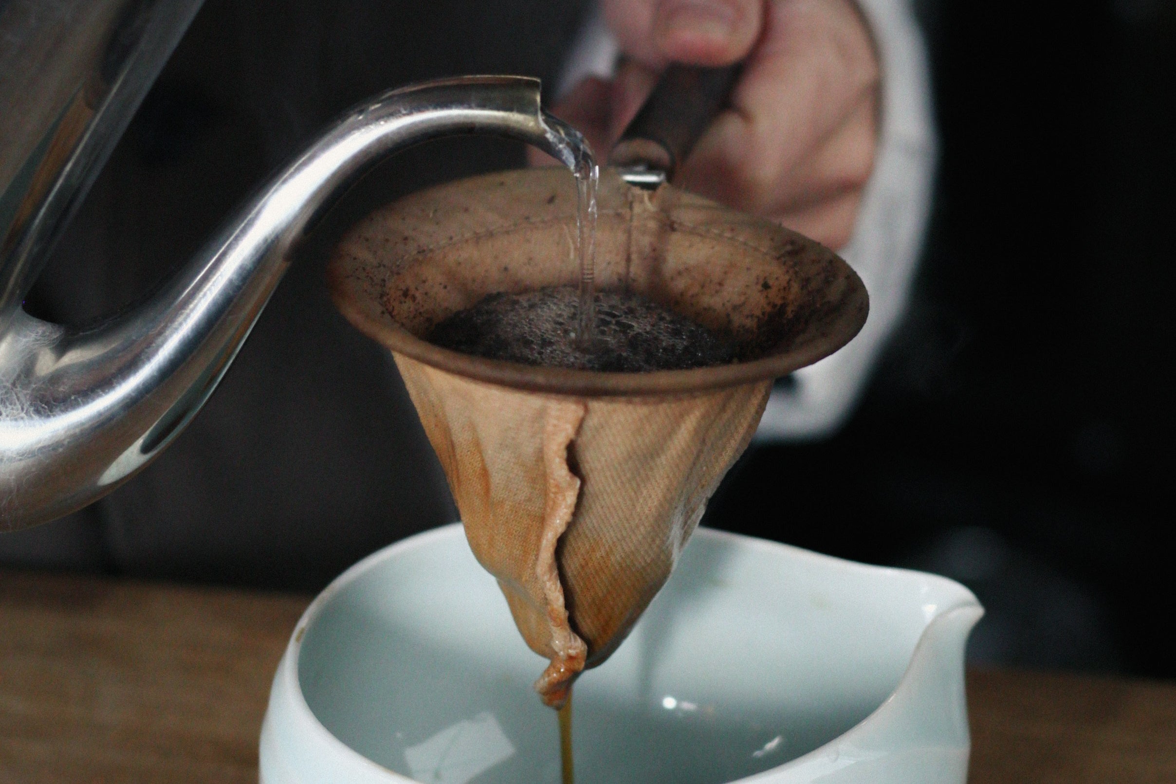 アウラで提供するコーヒーは、ハンドグラインダーで手挽きし一杯ずつ丁寧に淹れます。それは、味や珈琲そのものを楽しんでいただくだけではなく、提供されるまでのひとときも味わい深い時間にしたいという想いが込められています。