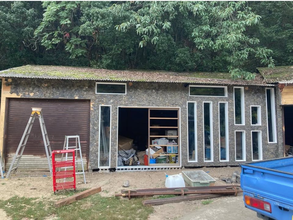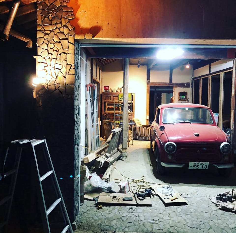 今から7年前の2018年、自宅の1階を知人に飲食店として貸すことになり、自分の車を置く場所がなくなり、新たに車庫を探すことにしました。最初は近くにシャッター付きに車庫を借りていたのですが、さらに車が増えることになり、2台分借りるなら、どこかに安い車庫を買ったほうがいいかなと思い、その年末、自宅から車で10分ほどの場所に車庫付きの土地を買いました。 旧軽自動車なら5台は入るガレージで隣に2階建ての納屋がついていました。 最初、その納屋をDIYリフォームして、1階で知人達とお酒が飲めて、2階で泊まって帰れる遊び場を作りはじめました。完全に素人でしたが、周りの人のアドバイスを聞きながら(まったく言う通りにしなかったけど)、作業進めました。