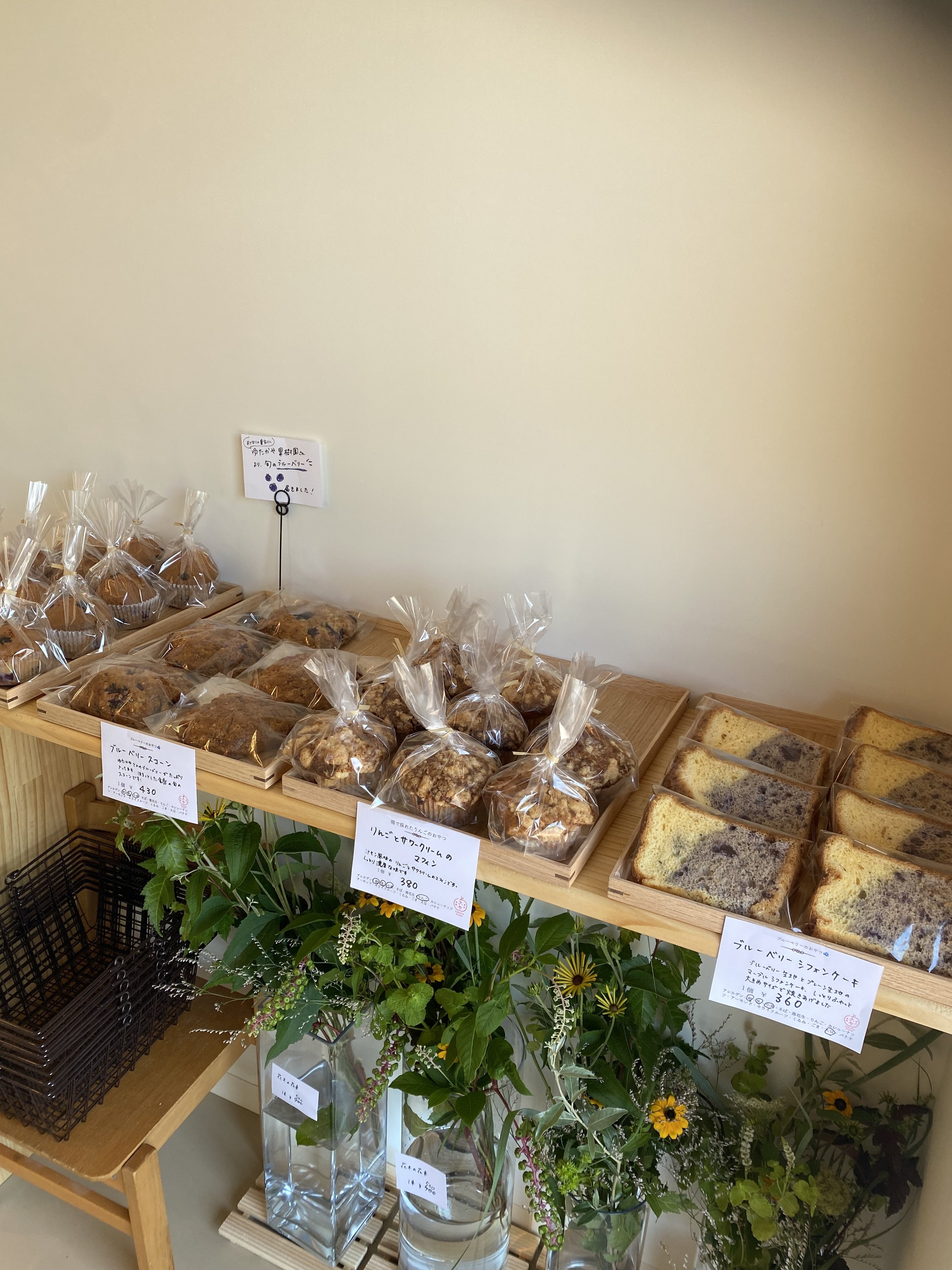 7月のプレオープンではお隣のゆたかや果樹園さんで収穫できたブルーベリーのお菓子を焼きました地元の方が、気軽におやつを買いに来れる場所になればいいな。と思ってスタッフがいろいろなお菓子を試作してくれています。