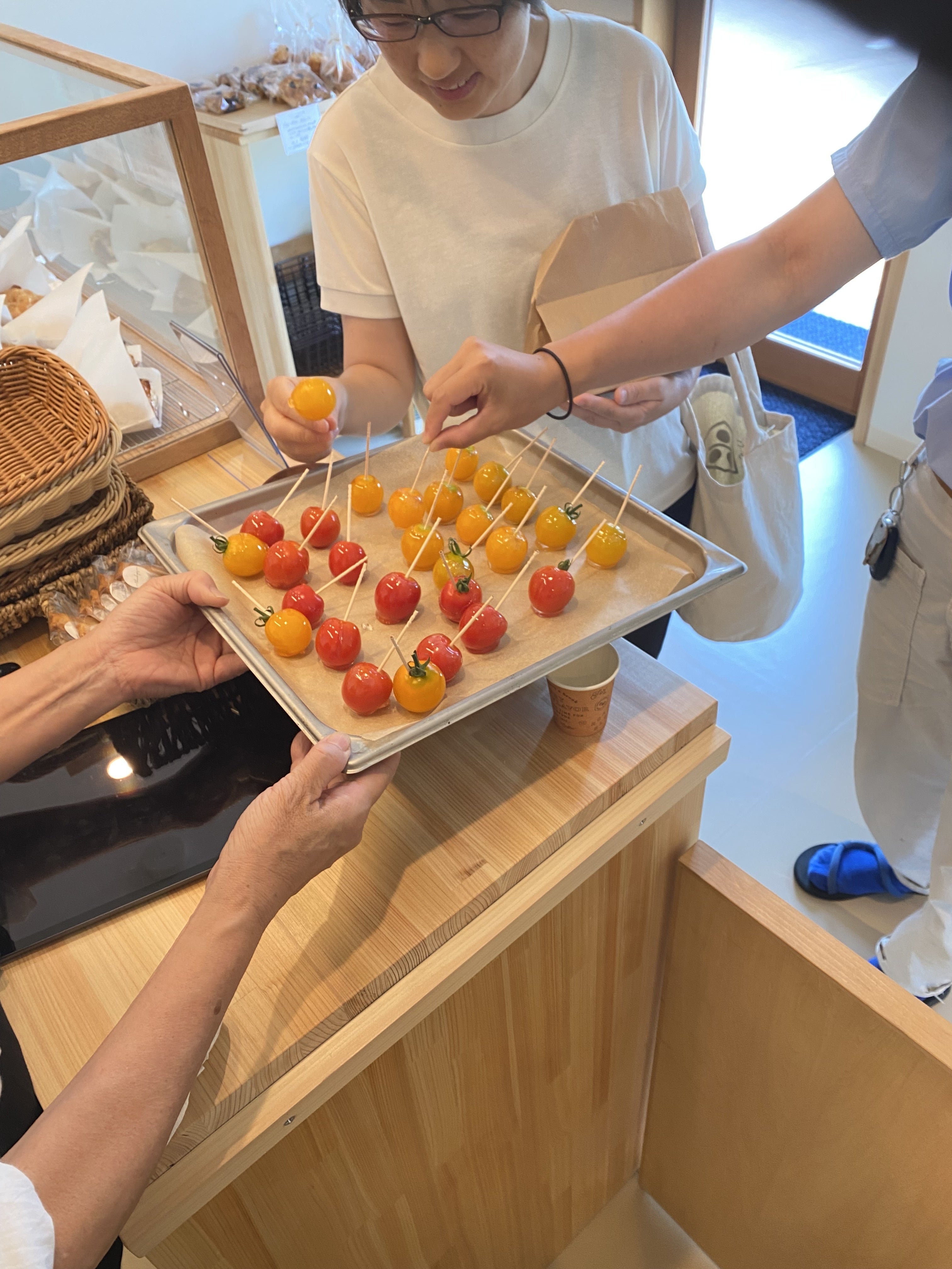プレオープンのミニプレゼントに父の野菜畑で収穫したトマトのトマト飴つくってみました。