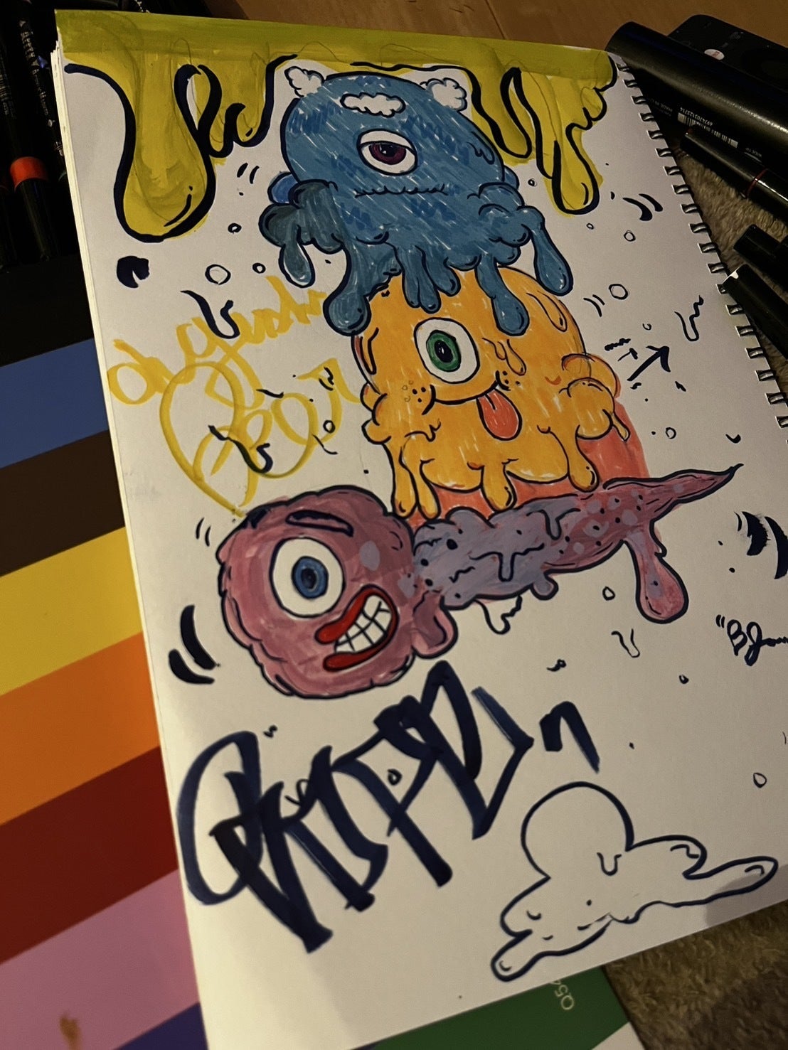 また、壁の洗浄やコンシーラーの塗布など、さまざまな作業をお手伝いいただき、大変助かっています。今回のアートの内容は、ジェイミーさんのオリジナルのキャラクターの再創作となりますので、非常にお楽しですね。