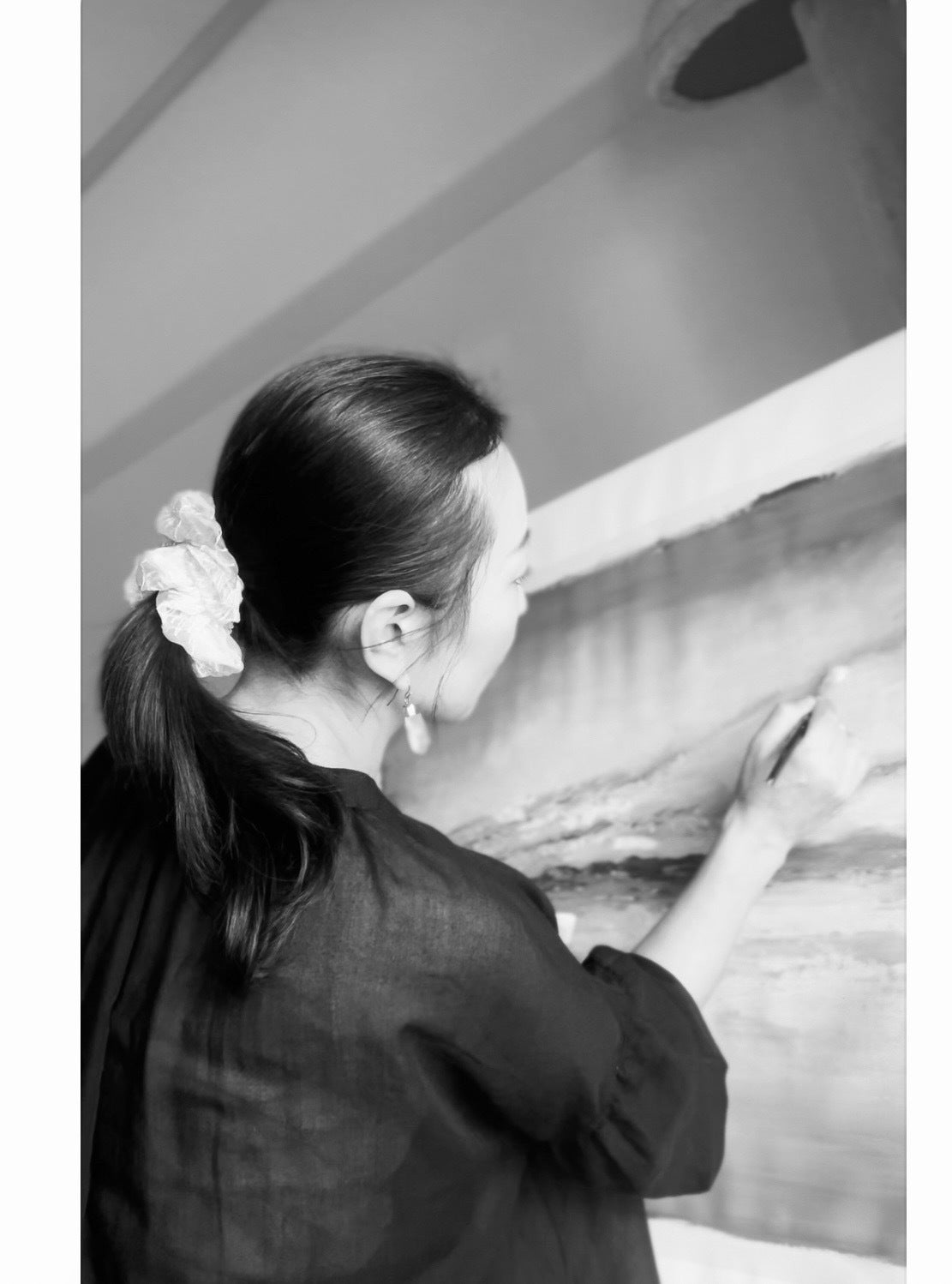 ミエさんの作品は、醸造所玄関ドアの上の二階部分に描く予定です。
