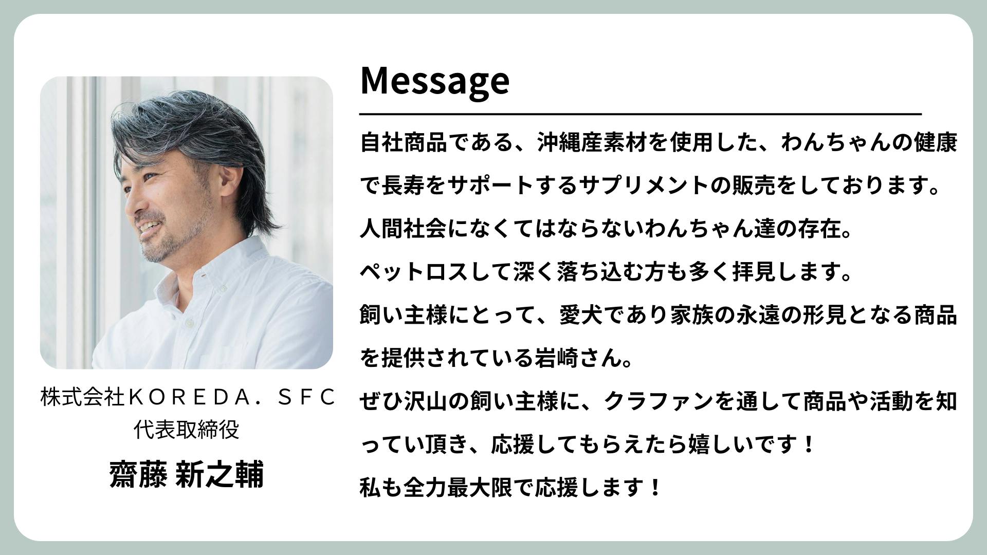 2025/04/01 10:43皆様、こんにちは!私たちのクラウドファンディングプロジェクトが開始されてから早くも1ヶ月が経過しました。この度は、プロジェクト開始から現在に至るまでの活動報告と、残り1か月でのさらなる取り組みについて共有させていただきます。今までの実績:私たちは、多くの支援者のおかげで目標金額の35%を達成することができました。これまでに、10名以上の方々から支援を受け、358,000円の資金を集めることができました。これらの資金は、今後開催するセミナーの費用等に充てる予定です。また、支援いただいた方々へのリターンの準備も少しずつ進めていく予定です。今後の意気込み:残り1か月の期間、私たちはさらに一層の努力を重ね、プロジェクトを成功へと導くために全力を尽くします。目標金額の達成を目指し、さらに多くの支援者の皆様と繋がることができるよう、どんどん情報発信をしていきます。私たちは、これまでのサポートに心から感謝しており、最終日まで諦めることなく挑戦を続けます。皆様の変わらぬ支援と応援が私たちの大きな力となっています。最後に:クラウドファンディングの成功は、支援者一人ひとりのご支援によって成り立っています。残りの期間も、私たちのプロジェクトに引き続きご注目いただき、支援の輪を広げていただければ幸いです。このプロジェクトが成功し、少しでもペットロスになる方を減らせるように尽力していきますので、引き続きご支援、ご協力をお願い申し上げます。 もっと見る【出展決定】インターペット2025(東京)